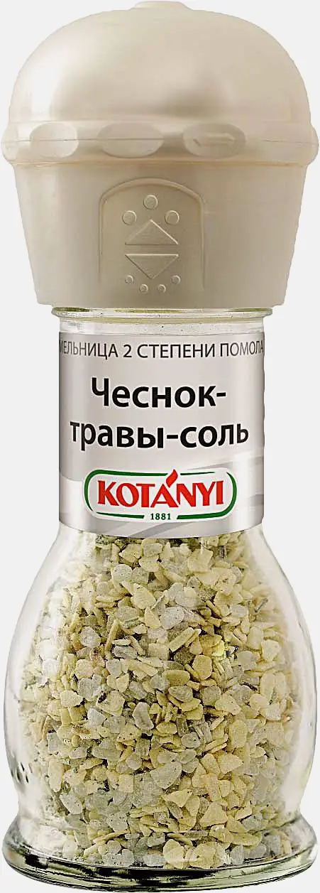 Приправа содержит классическую пару ингредиентов — соль и чеснок. Дополнена ароматами любистка, чабера, розмарина. В составе присутствует кервель, сочетающий в себе нотки аниса, петрушки и эстрагона.