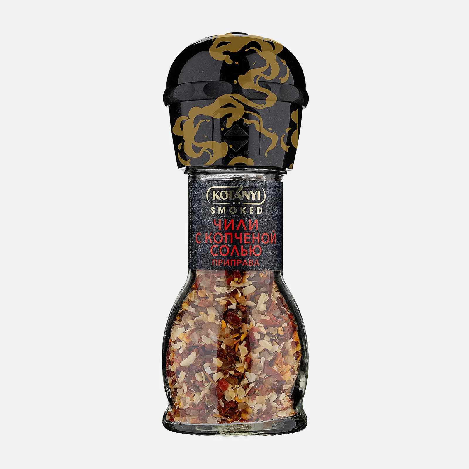 Смесь копчёной морской соли с чили, луком, чесноком, паприкой и томатами. Удобная мельница позволяет точно дозировать приправу прямо во время готовки. Подходит для мяса, овощей, запеканок и блюд на гриле.