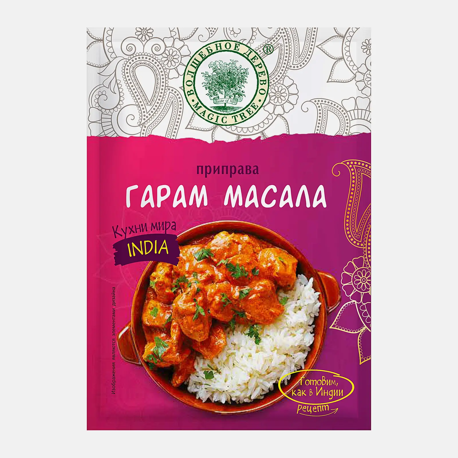 Классическая смесь специй, которая является частью индийской кухни. Приправа обладает богатым, насыщенным вкусом с лёгкой остротой и теплотой. В основе состава — кориандр, кумин, морская соль, корица, мускатный орех, кардамон, бадьян, чёрный перец, гвоздика и лавровый лист.