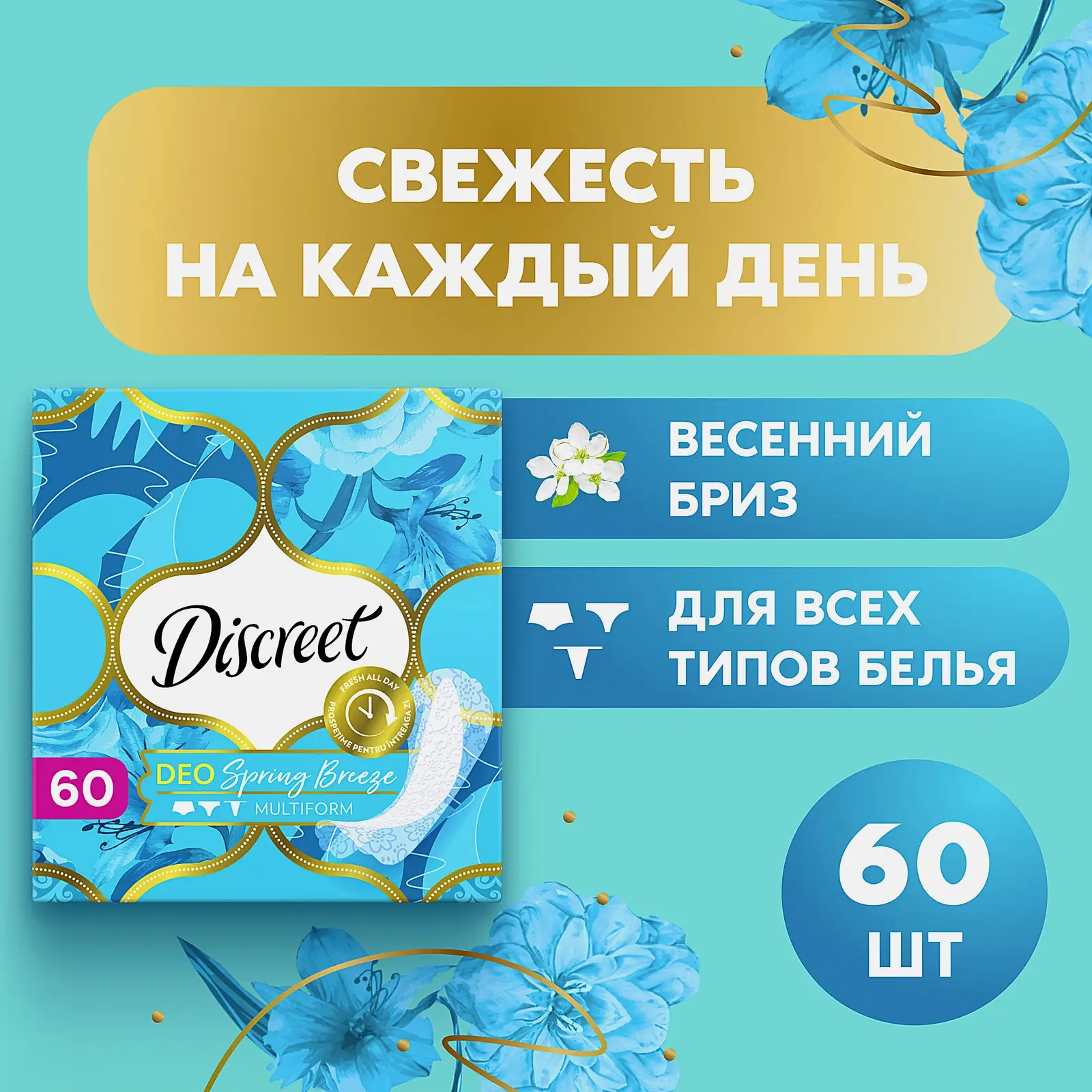Ежедневные прокладки с ароматом «Весенний бриз» обеспечивают до 12 часов комфорта и свежести. Подходят для любого типа белья, не ощущаются при носке. Тонкие, гибкие, дышащие, с надёжной клейкой основой по всей длине.