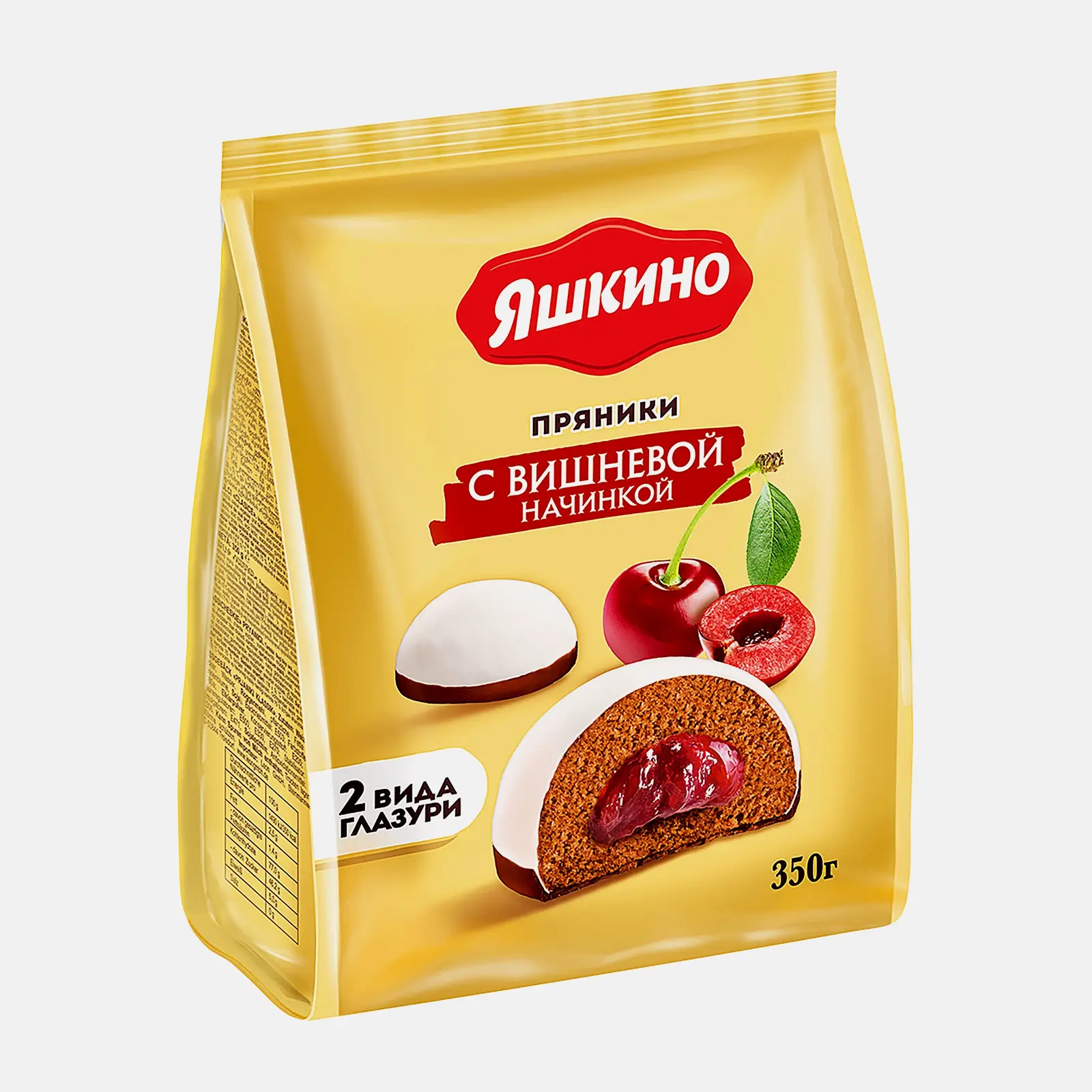 Пряник Яшкино с вишневой начинкой 350г украсит любое чаепитие, станет приятным энергетическим перекусом на работе, в школе и дома. Аппетитный десерт создан по классическому рецепту из мягкого заварного теста. Начинка из вишневого пюре придает ему приятный кисло-сладкий вкус, а покрытие глазурью — привлекательный внешний вид. Лакомство хорошо сочетается с чаем, кофе, какао и молоком. Оно быстро утоляет голод, восполняет запас энергии, повышает физическую и умственную активность. Десерт представлен в яркой фольгированной упаковке, которая сохраняет свежесть содержимого. Пряников в пакете хватит для дружной семьи, компании друзей или коллег.