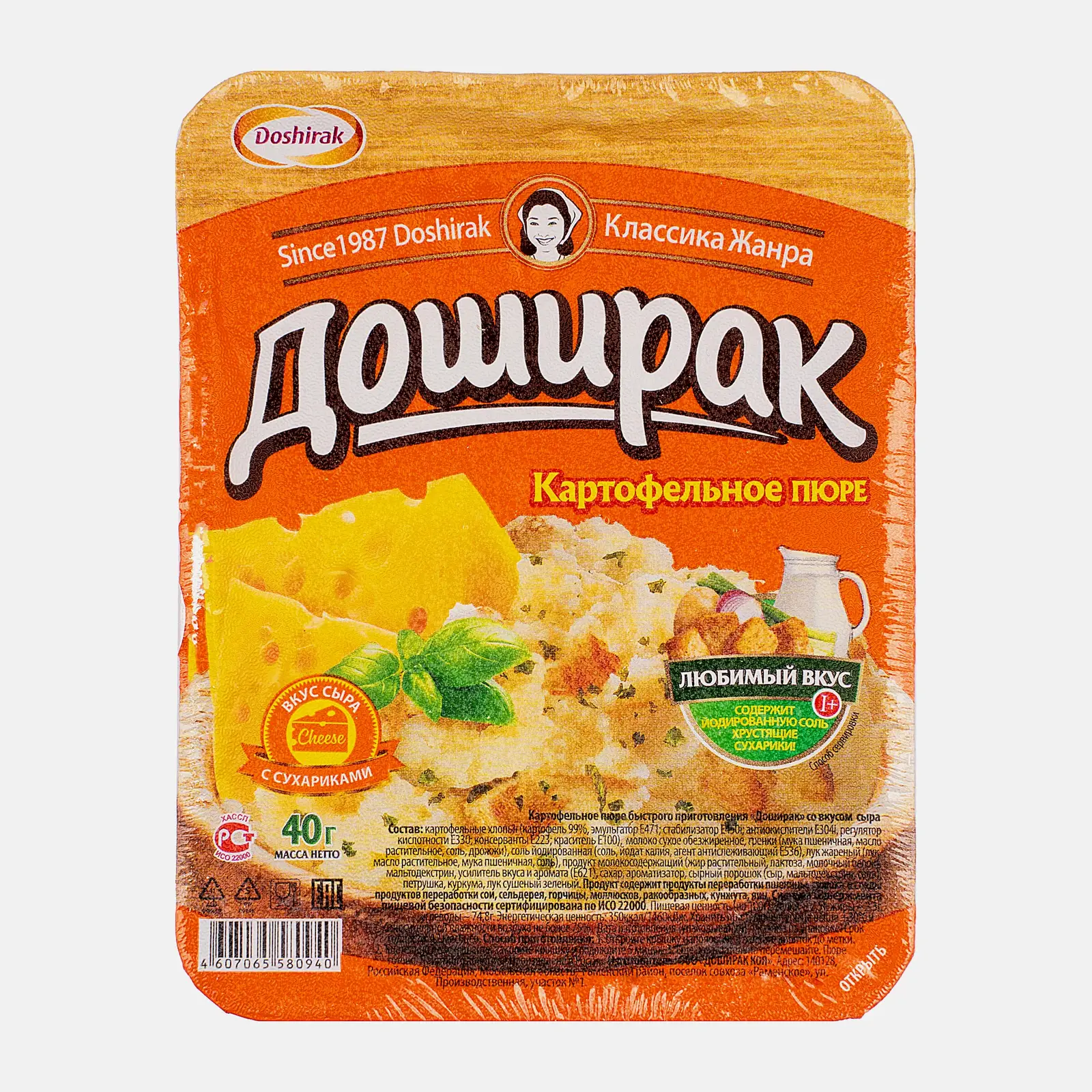 Пюре Доширак Премиум картофельное со вкусом сыра 40г — оптимальный выбор для сытного перекуса во время обеденного перерыва. Кроме того, питание быстрого приготовления незаменимая вещь для путешествий и туристических прогулок. Для изготовления пюре достаточно просто развести смесь горячей водой. Готовая еда имеет неповторимый вкус и манящий сырный аромат. Его можно употреблять как самостоятельное блюдо, а можно разнообразить свежими овощами, сосисками на гриле или барбекю. В составе продукта — сухие картофельные хлопья и сырный порошок, молоко, сухарики и специи. Товар поставляется в герметично запечатанных пластиковых контейнерах. Срок годности составляет 365 дней.