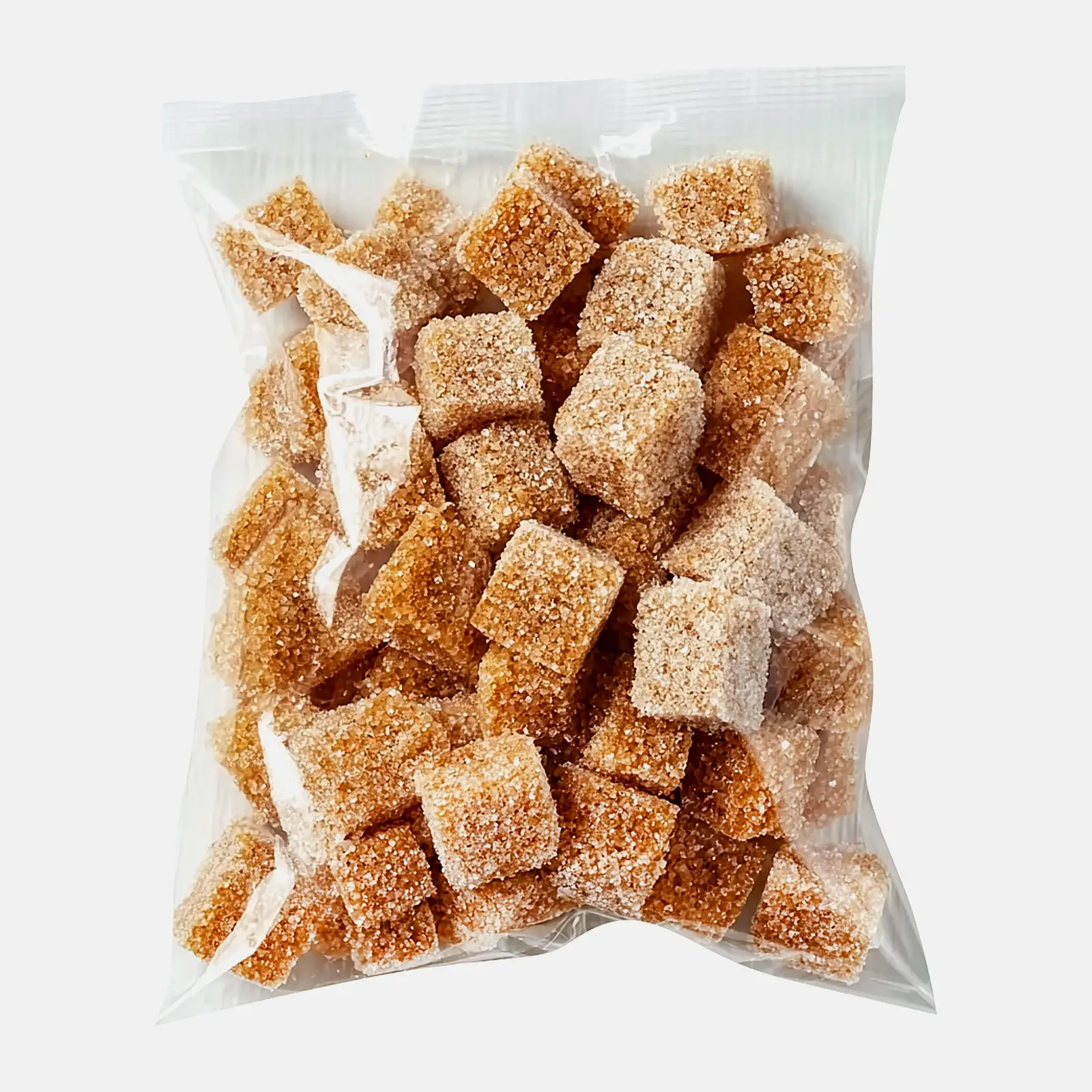 Тростниковый сахар имеет ярко выраженный карамельный вкус и тонкий аромат — его чувствуешь, открывая упаковку. В составе — патока — именно она придаёт сахару характерный бурый цвет. Никаких красителей в нём нет. Сахар не рафинирован.