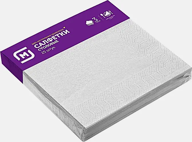 Классические белые трёхслойные бумажные салфетки подойдут как для повседневных приёмов пищи, так и для праздничного стола. Мягкие, плотные, с аккуратной перфорацией по краю.