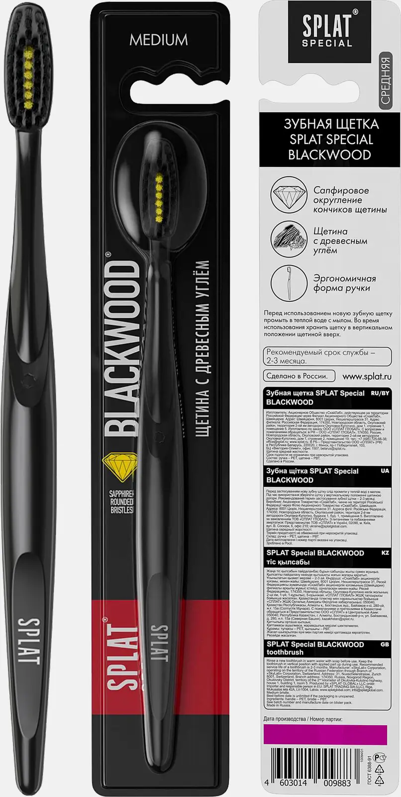 Зубная щётка помогает бережно ухаживать за эмалью и дёснами. В состав щетинок входят частицы древесного угля, нейтрализующего опасные вещества, что увеличивает качество постоянной чистки.