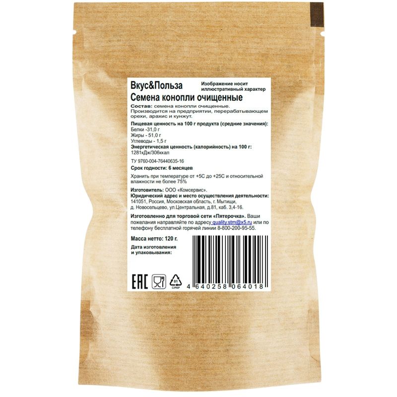 Семена Вкус & Польза конопли очищенные 120г