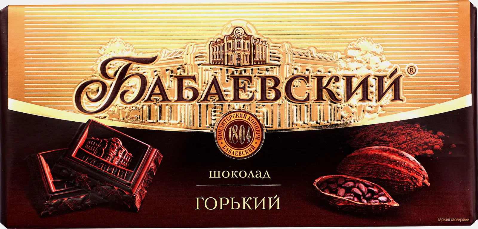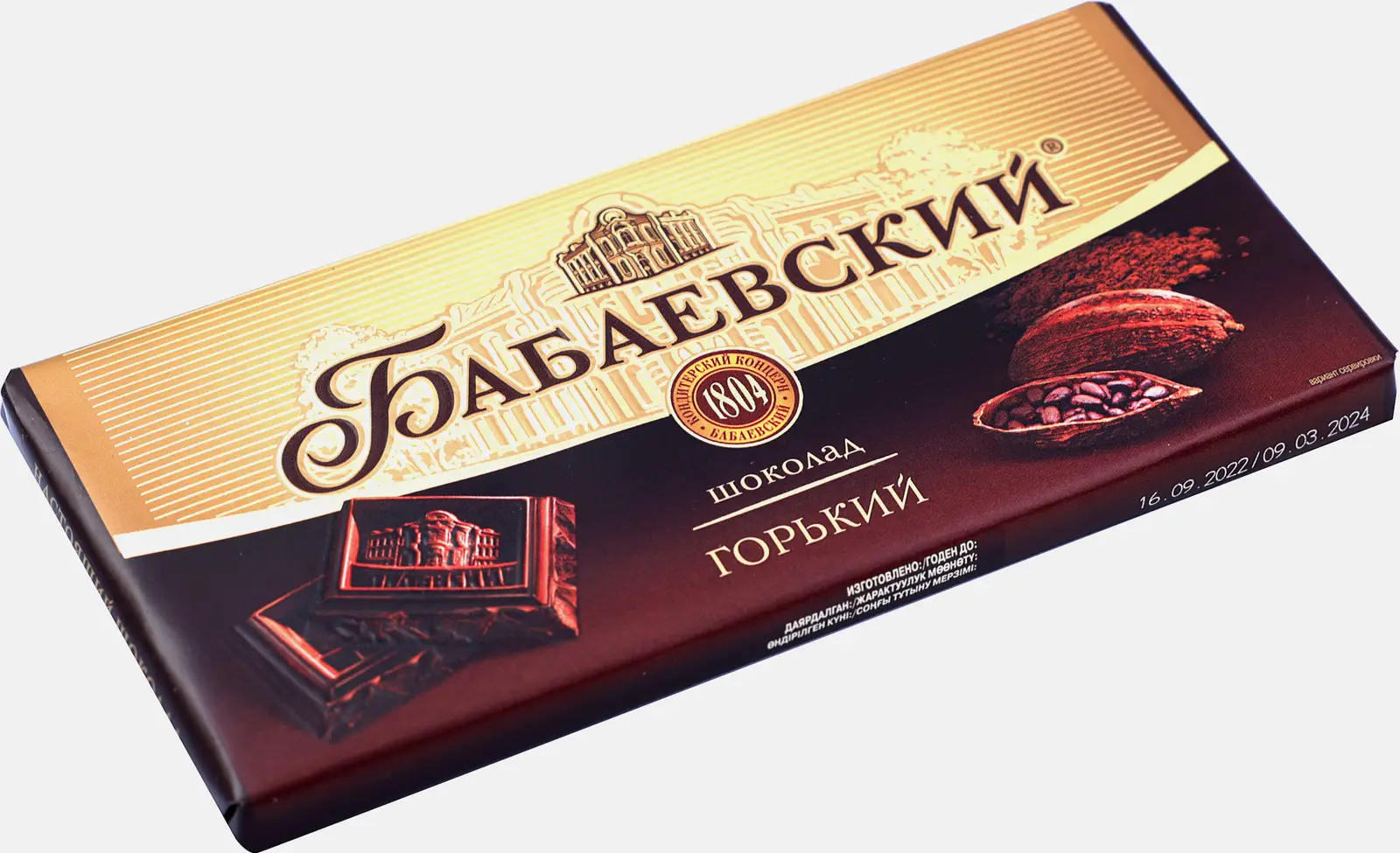 Шоколад Бабаевский Горький 55% 75г — вкусный шоколад, приготовленный по особому кулинарному рецепту. В продажу товар поступает в ярких бумажных упаковках. Общий вес плитки — 75 г. Пикантный вкус и необычный аромат продукту придает тертый миндальный орех и коньяк. Также в составе десерта присутствуют: отборное какао-масло, сахар, натуральные какао-бобы, ароматизатор «Миндаль» и «Ваниль». Лучшим образом дегустационные качества шоколада раскрывает крепкий кофе, приготовленный в турке. На 100г продукта приходится 550 ккал. Это перекус, который в полной мере удовлетворяет потребности организма в питательных веществах.