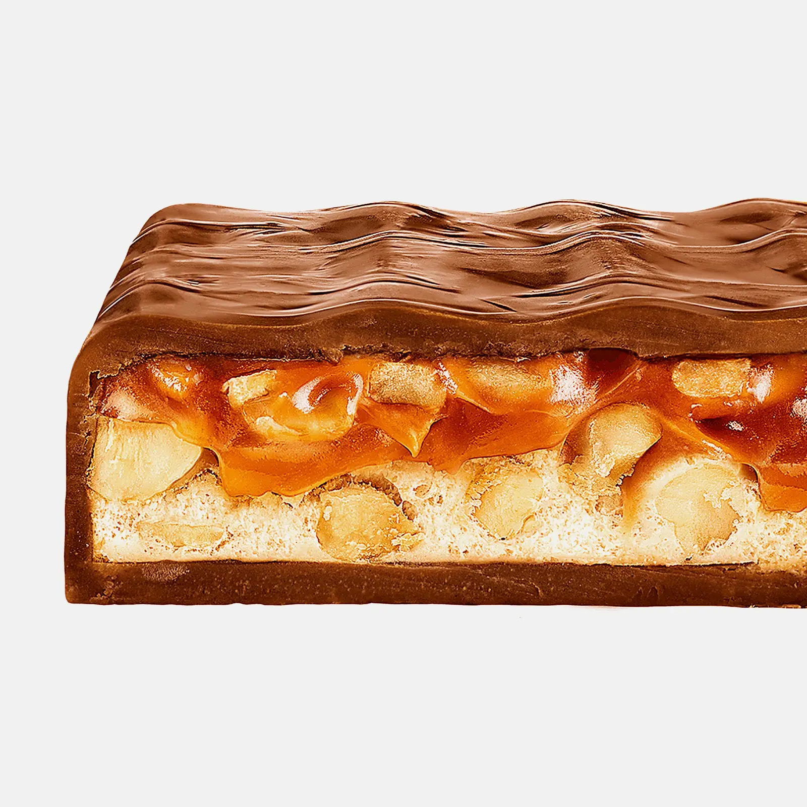 Молочный шоколад с тягучей карамелью, нежной нугой и обжаренным дроблёным фундуком. Большая плитка — для тех, кто любит растянуть удовольствие.