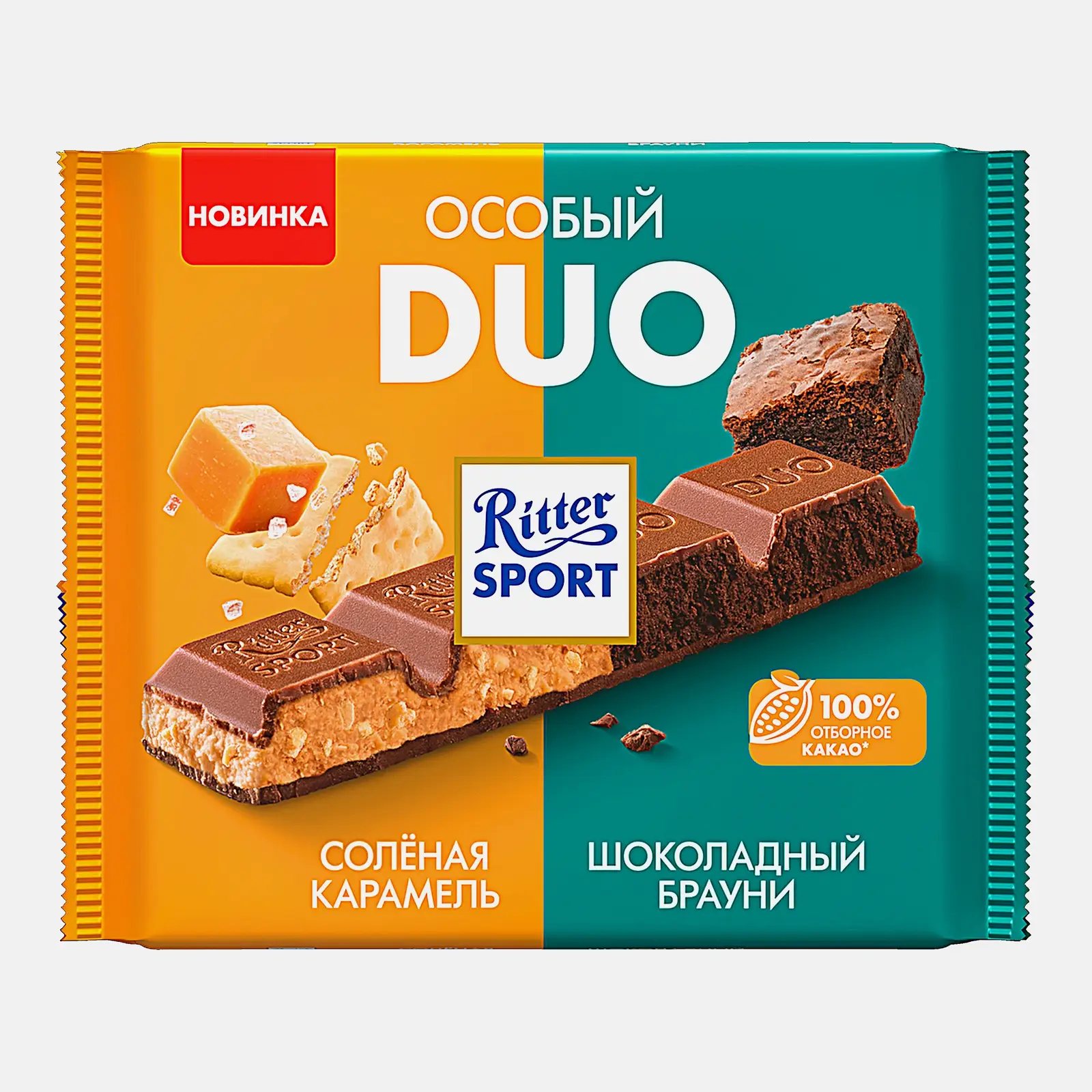 Шоколад Особый соленая карамель и шоколадный брауни Ritter Sport Duo 218г