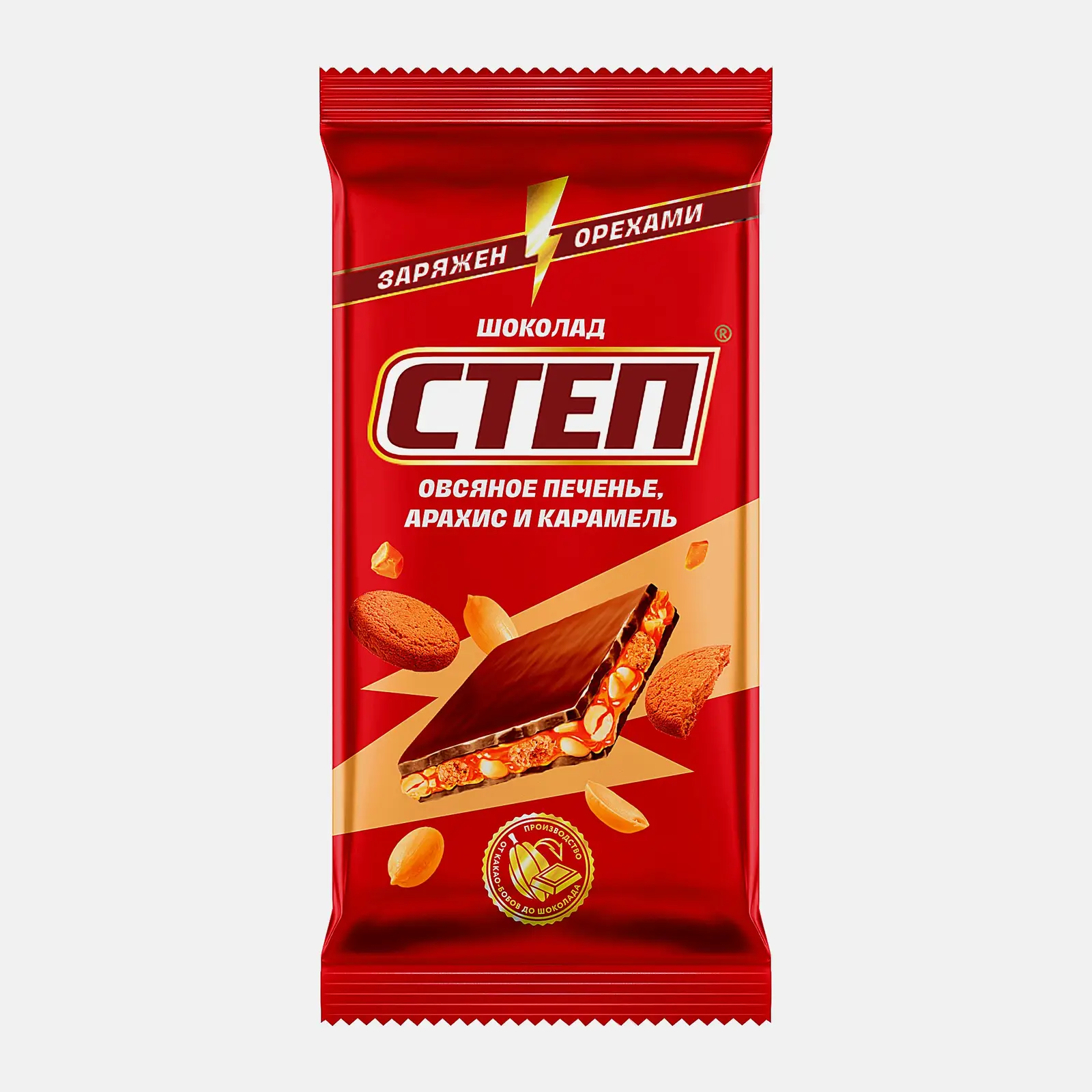 Шоколад Степ молочный овсяное печенье арахис и карамель 80г