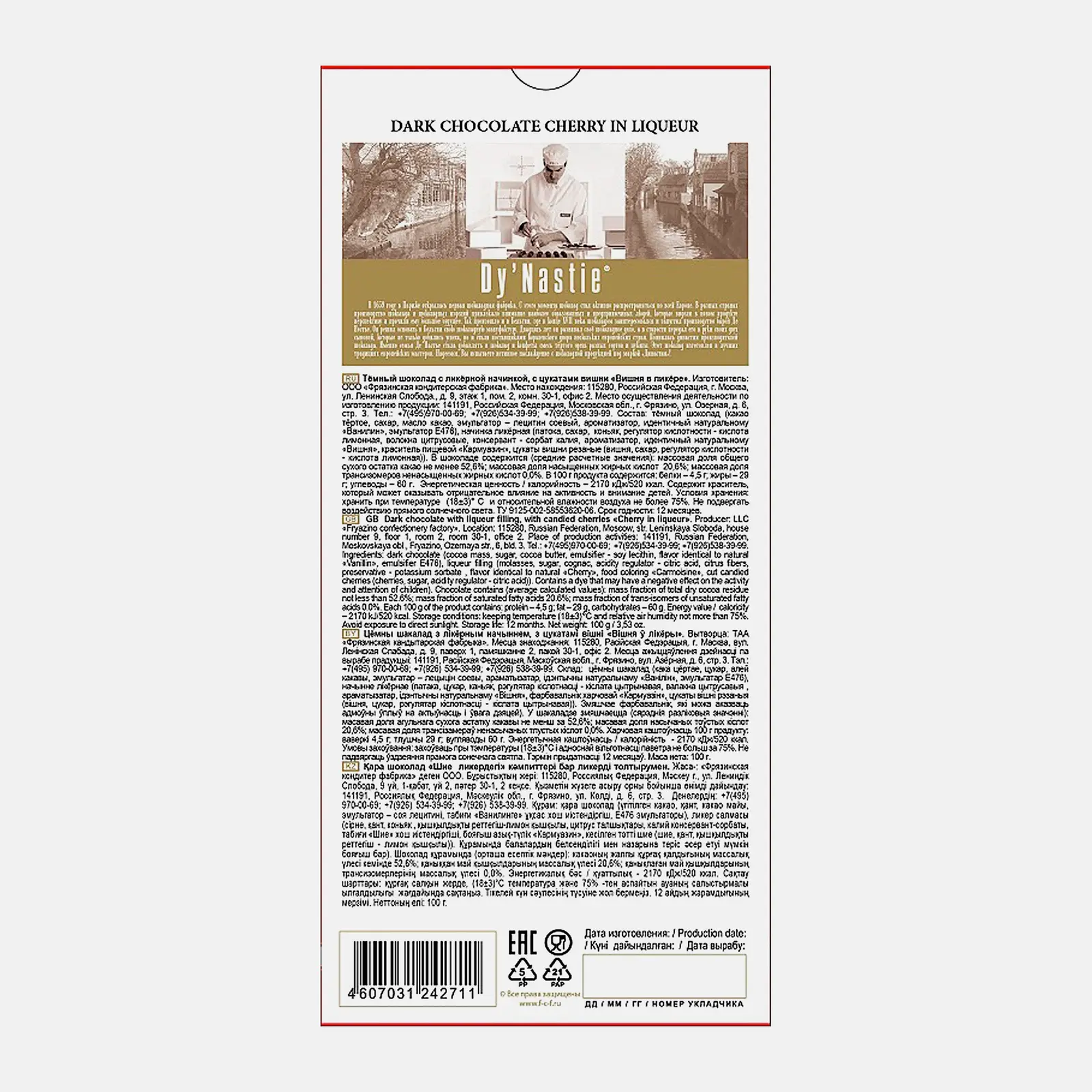 Шоколад темный Вишня в ликёре Dy Nastie 48% 100г