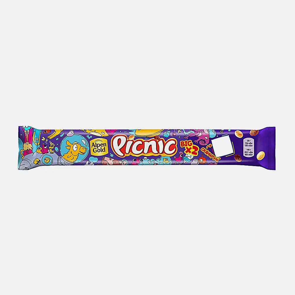 Батончики с арахисом, изюмом, карамелью, вафлями и воздушным рисом в молочном шоколаде. В упаковке 2 штуки. Удобно брать с собой для перекуса.