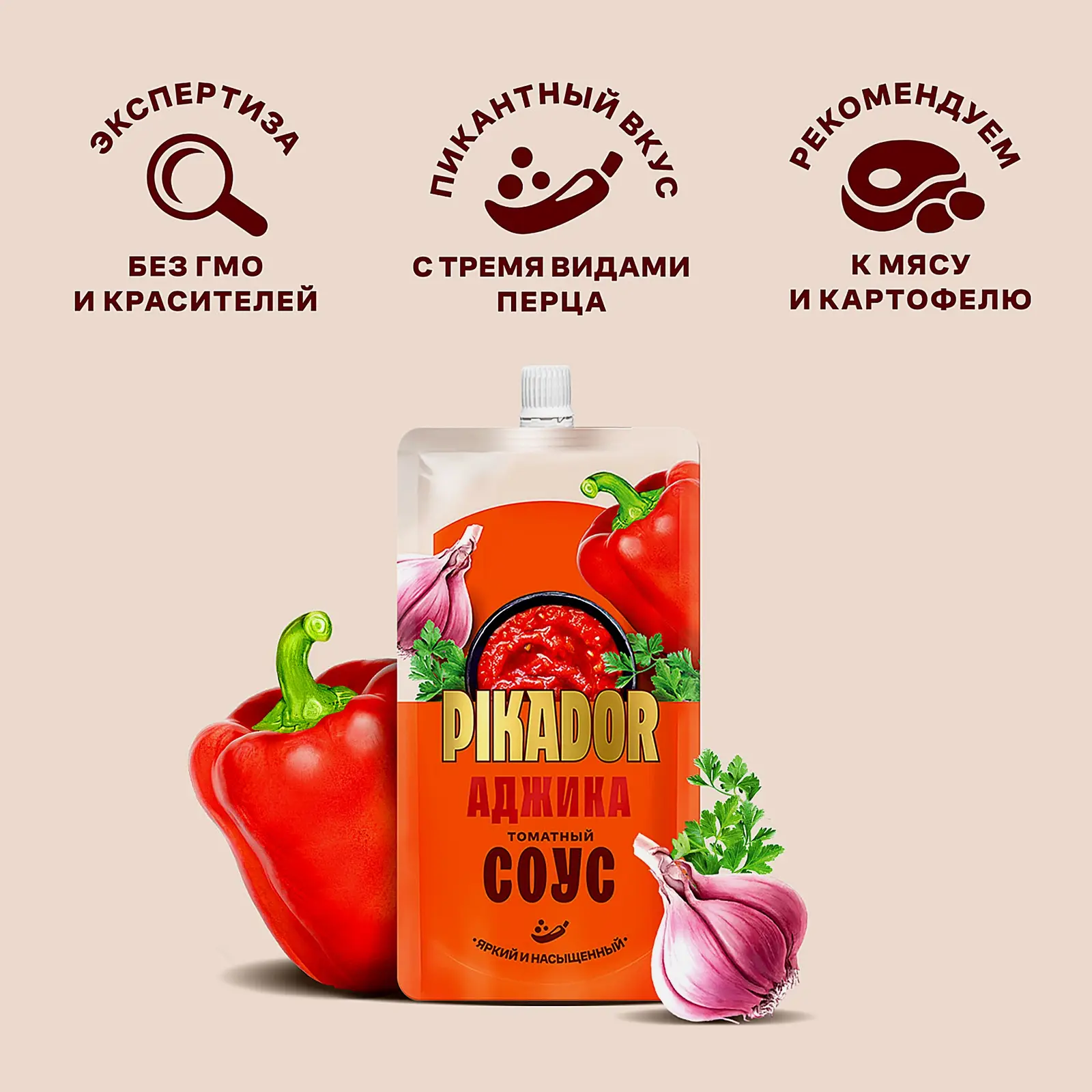 Томатный соус на основе традиционного рецепта аджики. В его составе 3 вида перца и пряные травы. Подходит для мясных блюд, птицы, гарниров, закусок и запечённых овощей. Без красителей и крахмала. Упаковку дой-пак удобно хранить дома и брать с собой.