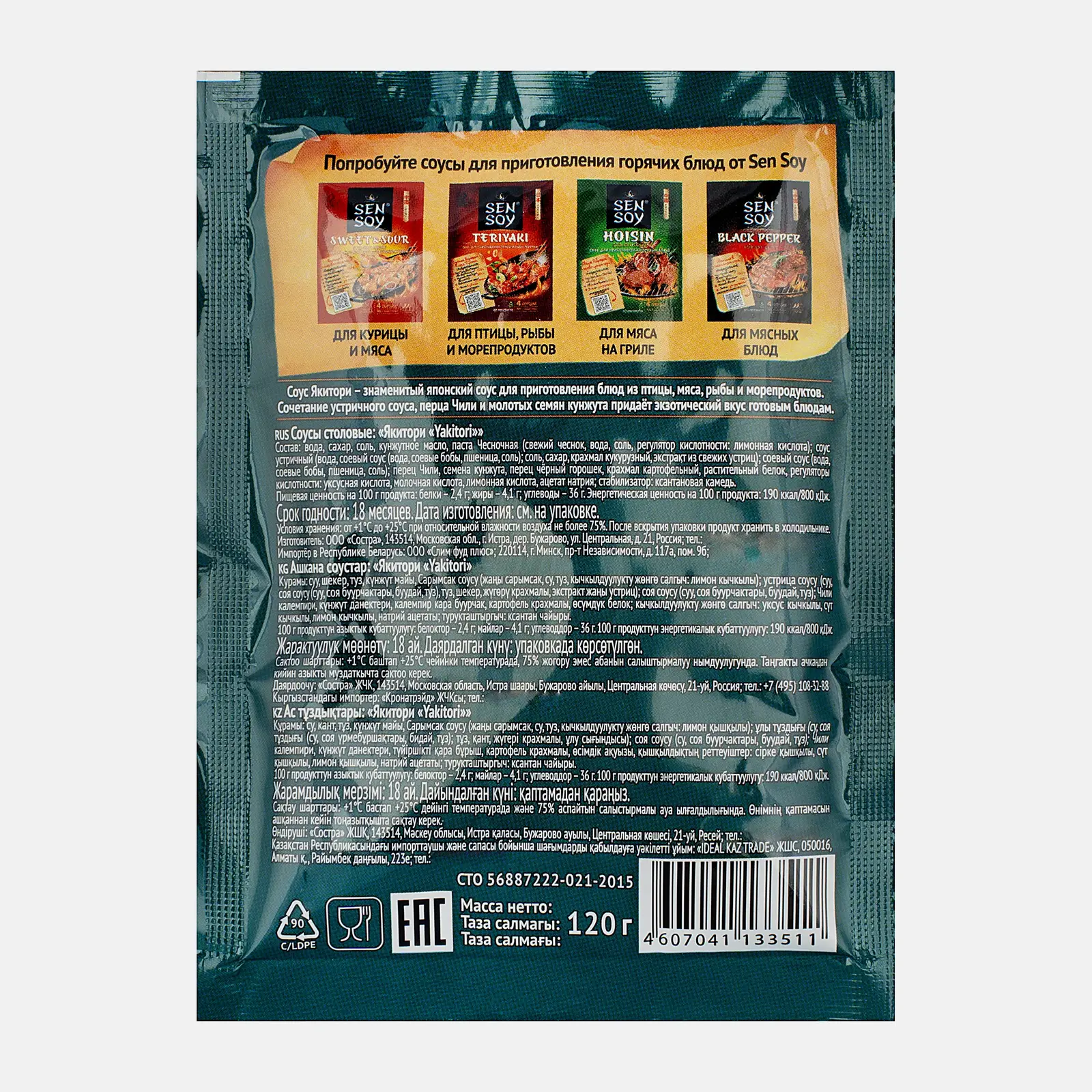 Классическая смесь для маринования шашлычков-якитори на основе соевого и устричного соусов, а также кунжутного масла. Пикантные нотки во вкус вносят чесночная паста, чёрный перец и перец чили. Можно использовать и как маринад, и как подливку при подаче.