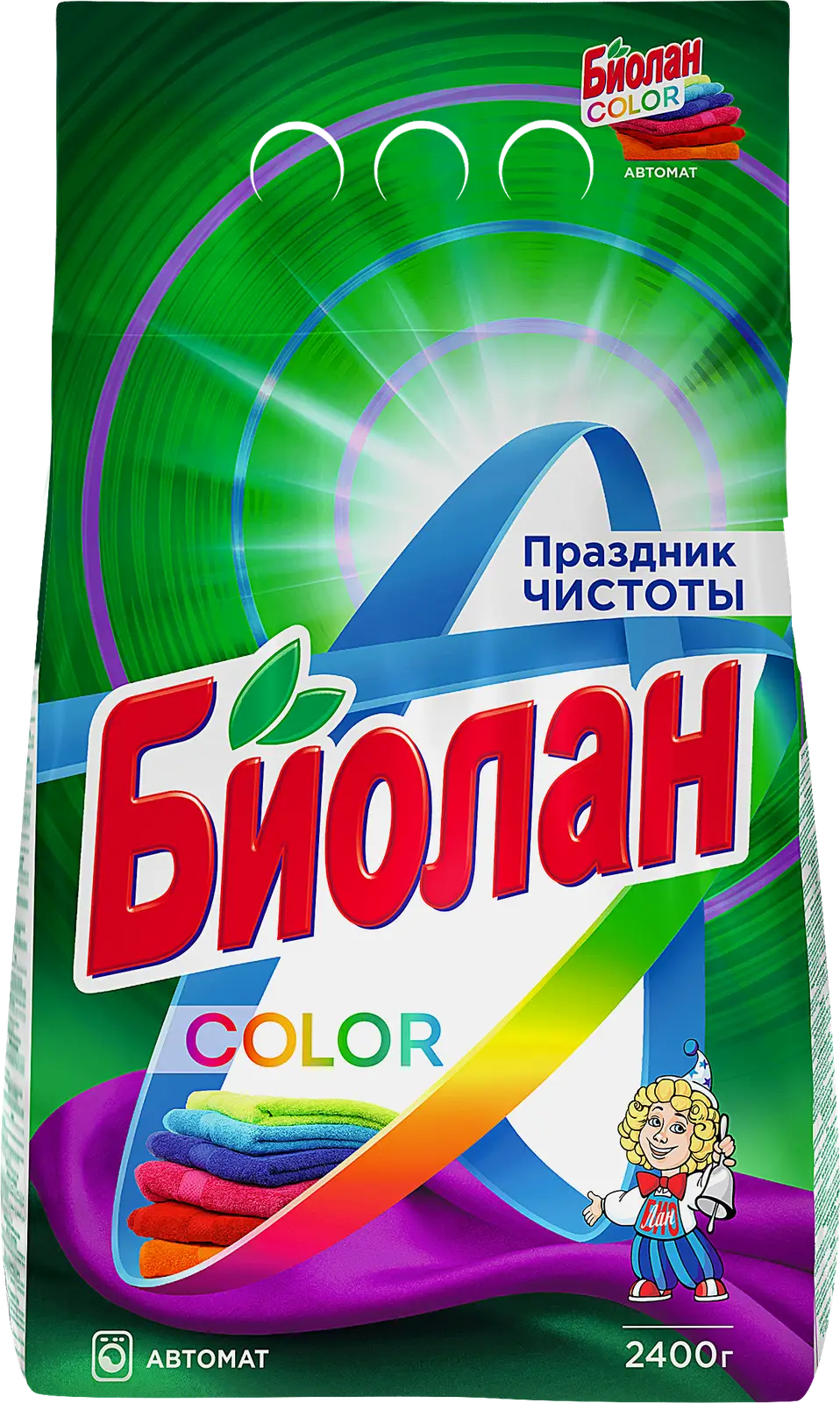 Благодаря сбалансированной формуле порошок бережно очищает волокна, удаляет широкий спектр пятен и препятствует выцветанию ткани. Средство работает при температуре от 30 до 60 °C. Его формула с пониженным пенообразованием делает полоскание лёгким и быстрым. Подходит для хлопка, синтетических и смешанных тканей, кроме шерсти и шёлка.