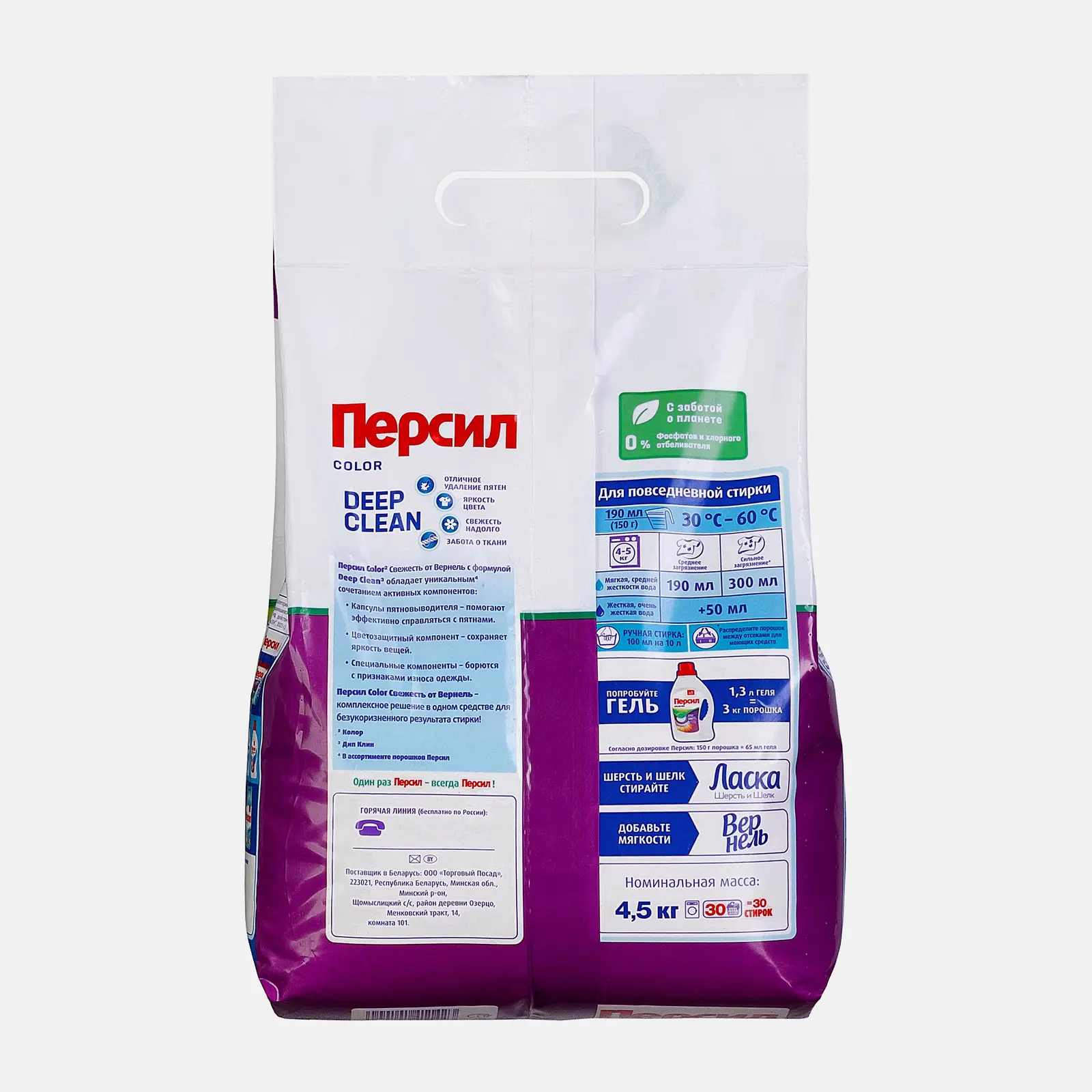 Порошок для стирки цветных вещей из хлопка, льна, синтетики и смешанных волокон. Удаляет самые различные пятна, заботится о ткани и возвращает вещам яркость красок и свежий аромат. Подходит для стиральных машин и ручной стирки в воде любой жёсткости. Не содержит фосфатов и хлорного отбеливателя.