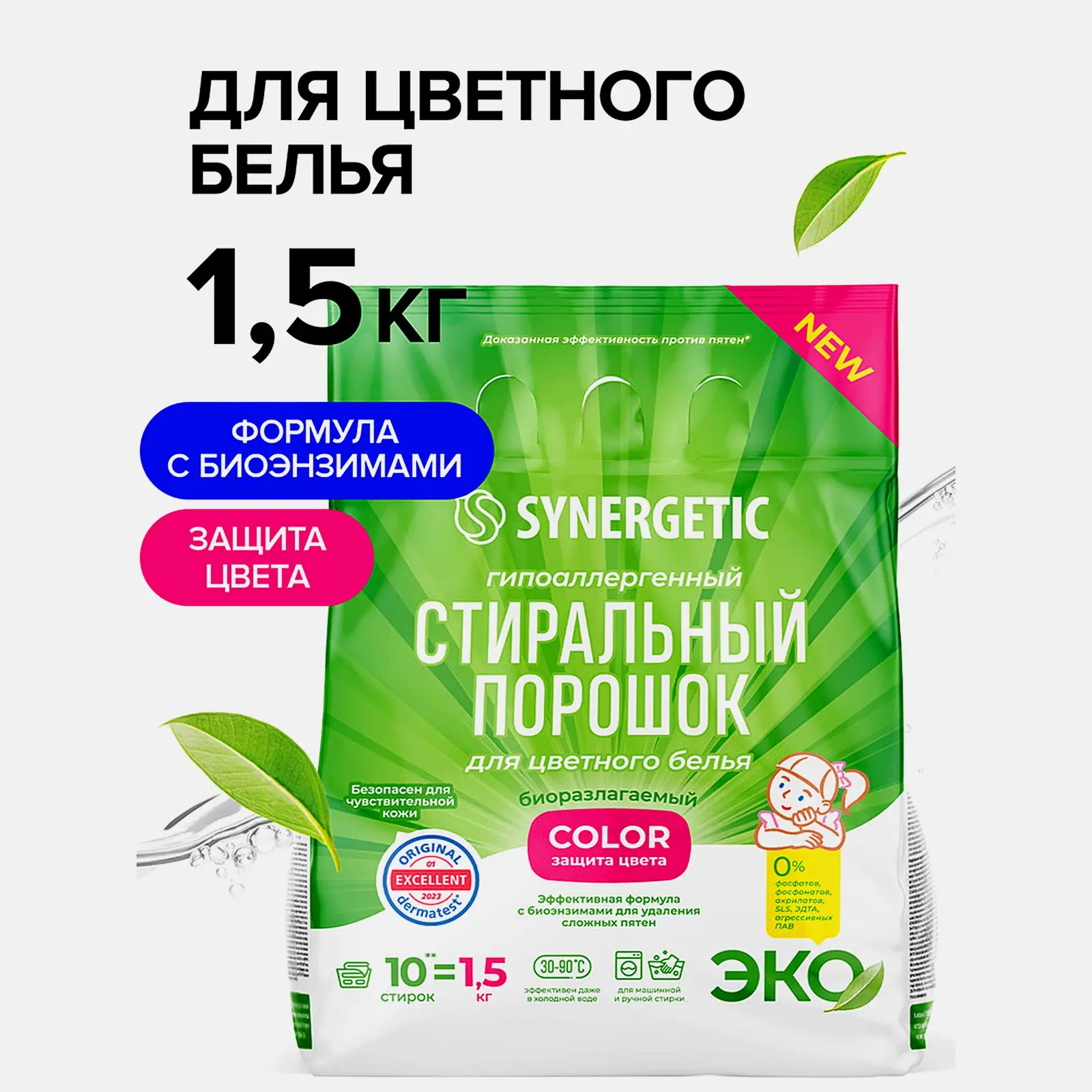 Гипоаллергенный стиральный порошок для цветного белья эффективно удаляет загрязнения и запахи даже в холодной воде. Формула с биоэнзимами и растительными ПАВ сохраняет яркость тканей и предотвращает появление катышков. Полностью выполаскивается, безопасен для чувствительной кожи и природы.