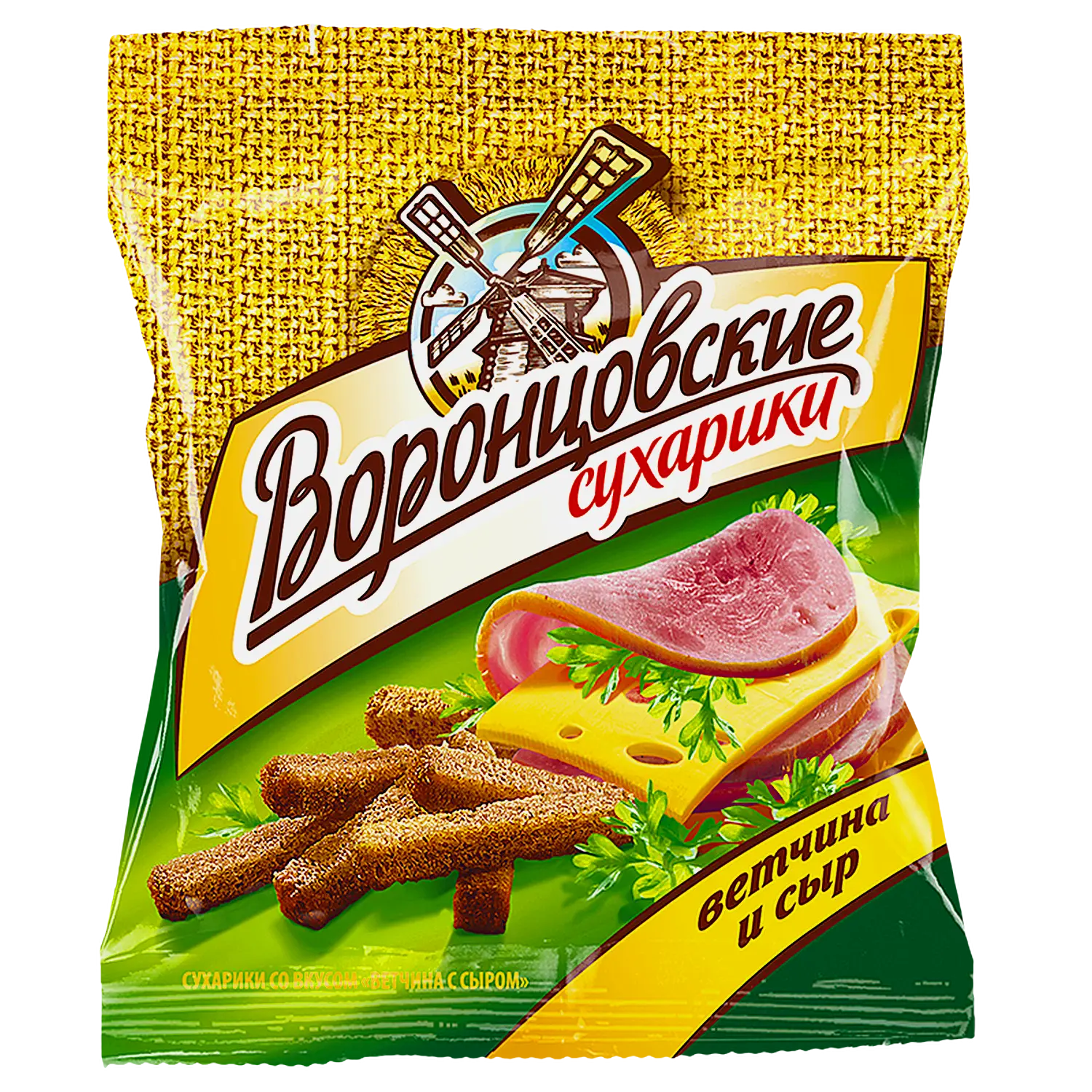 Сухарики Ветчина и сыр/Телятина на гриле/Шашлык/Сыр/Томат и моцарелла Воронцовские 40г в ассортименте