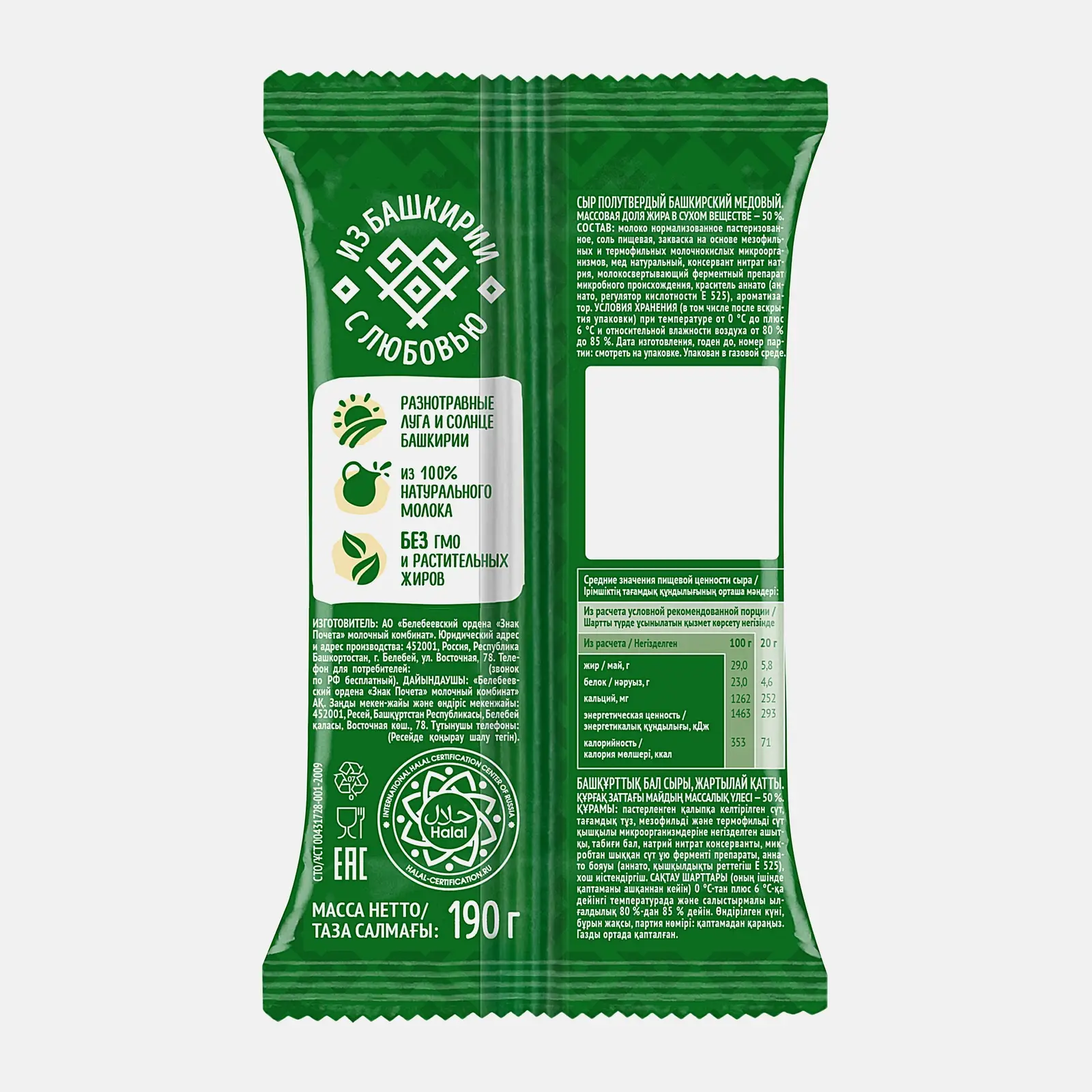 Сыр из натурального коровьего молока с добавлением башкирского мёда. У него сливочный вкус с лёгкой сладостью и характерным медовым ароматом. Уровень жирности продукта — 50%. Подходит для приготовления бутербродов, сырных тарелок или в качестве ингредиента для блюд.