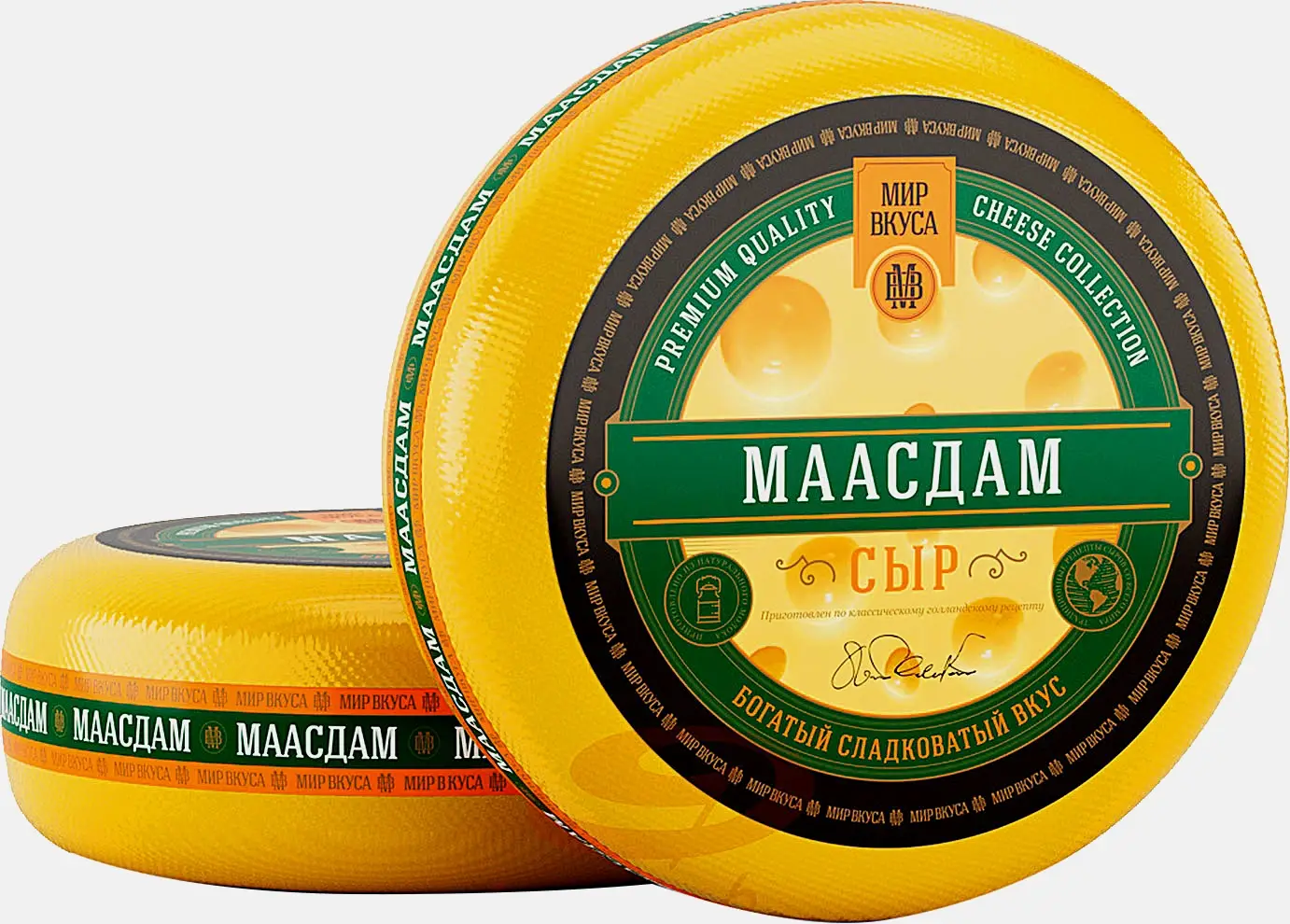 Классический сыр, который отличается рисунком из крупных глазков круглой и овальной формы. Продукт порадует богатым сладковатым вкусом с тонким ореховым послевкусием и лёгким сливочным ароматом.