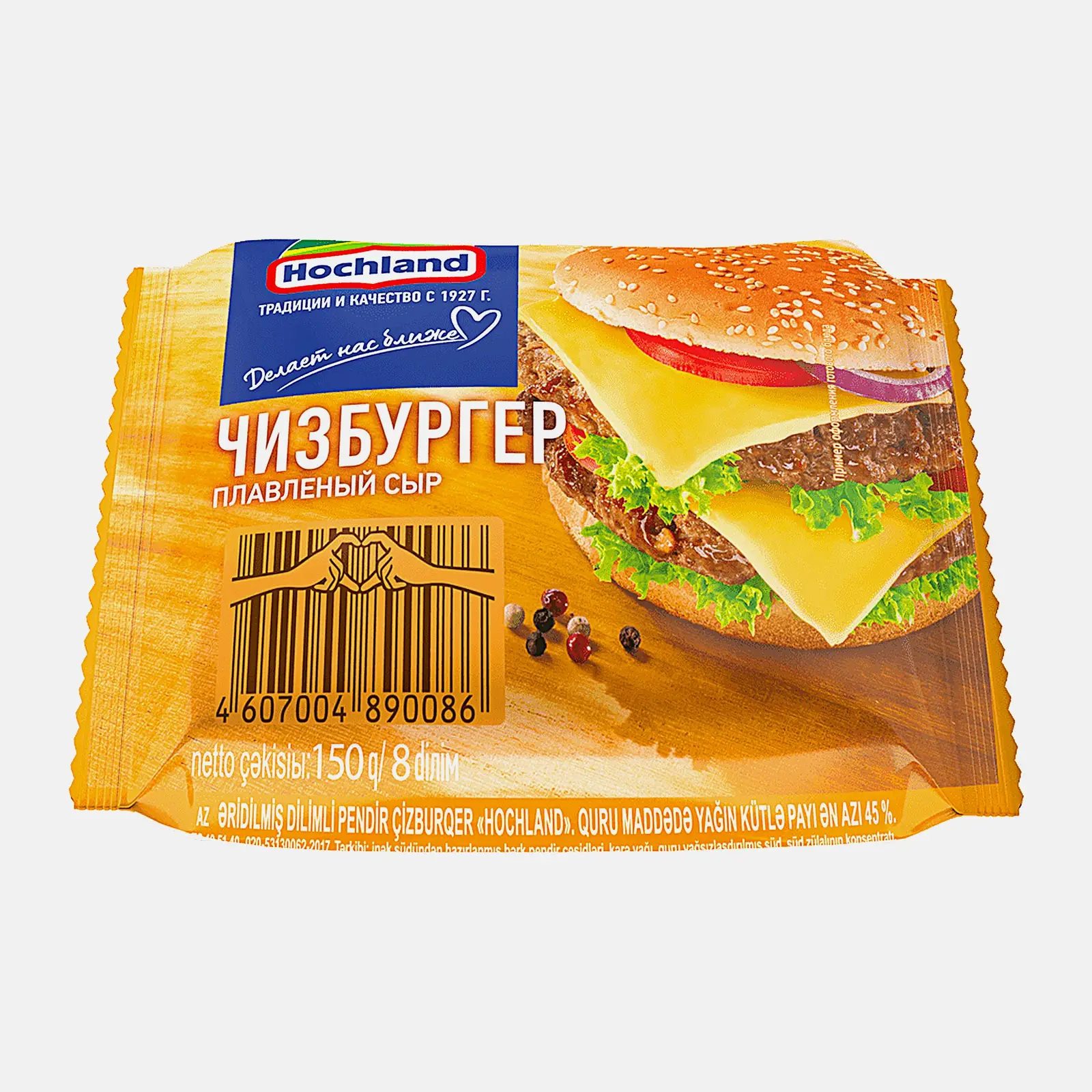 Плавленый сыр в виде квадратных тонких ломтиков — идеальное решение для бургеров и сэндвичей. Сыр изготовлен из классического натурального сыра с добавлением Чеддера.