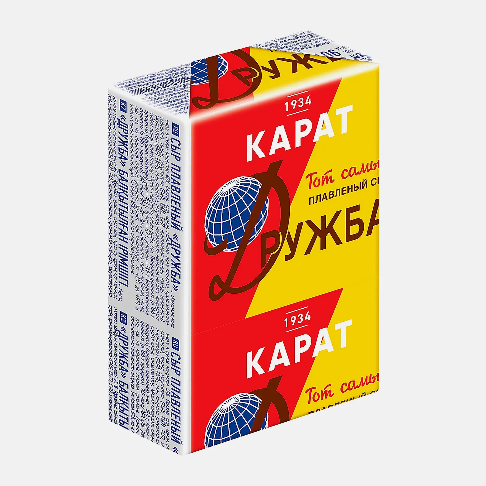 «Дружба» — тот самый легендарный плавленый сыр, изготовленный из купажа полутвёрдых сыров высокого качества с добавлением свежего творога, пастеризованных сливок и цельного молока.