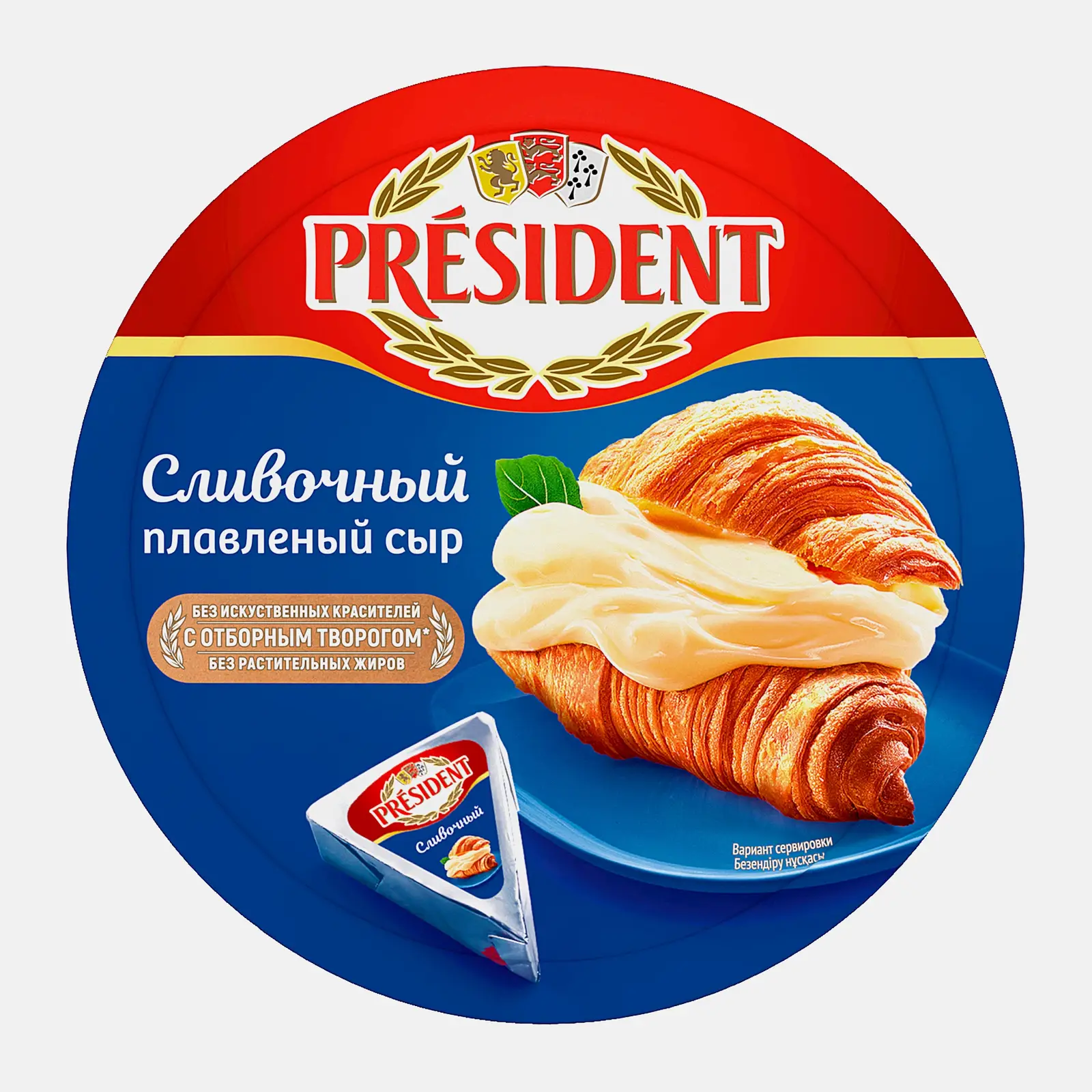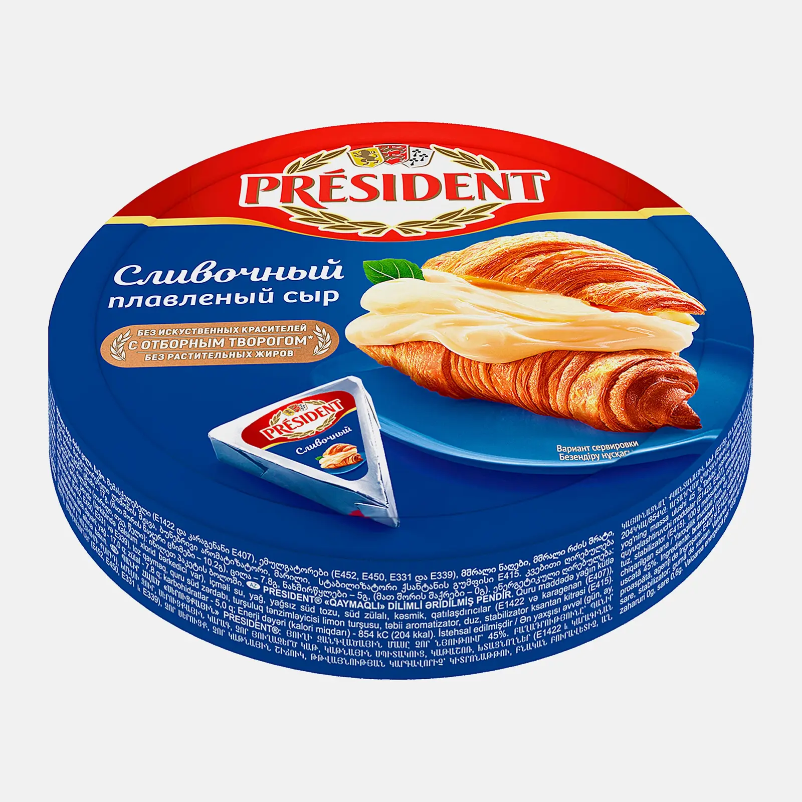 Плавленый сыр обладает сбалансированным вкусом и нежной однородной текстурой. Сыр изготовлен из высококачественного сыра с добавлением натурального творога, не содержит растительных жиров и искусственных красителей.