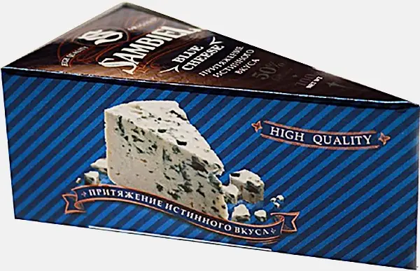 Сыр Sambiel с голубой плесенью 50% 100г — натуральный продукт, изготовленный из цельного молока с добавлением кисломолочных заквасочных культур и бактерий благородной голубой плесени. Это мягкий сорт сыра, который снаружи имеет твердую корочку желтого цвета и нежную белую мякоть с прожилками голубой плесени. Сыр имеет характерный аромат и выраженный соленый вкус с острым послевкусием. Продукт хорошо сочетается с красным терпким вином, нефильтрованным пивом, свежими фруктами и овощами. Благородный сыр станет настоящим украшением любого стола, его можно нарезать и уложить в составе ассорти.