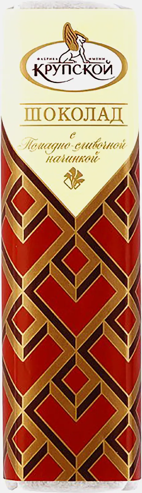 Шоколадный батончик КФ Крупской с помадно-сливочной начинкой 50г — качественный и вкусный десерт, подходят для любого чаепития. Он готовится по всеми любимой рецептуре без добавления ГМО и пальмового масла. Шоколадный батончик будет отличным презентом для ребенка любого возраста. Из него можно сделать начинку для пышных десертов. Батончик можно использовать в качестве ежедневного перекуса на работе или учебе. Он выглядит как продолговатый прямоугольник с красивым резным рисунком. Продукт упакован в красивый дойпак.