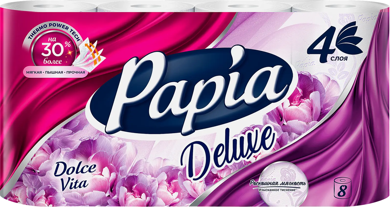 Туалетная бумага из 4-х слоёв с парфюмированным ароматом, который сочетает свежие ноты сицилийского лимона и бергамота, красной смородины и сандала. За счёт технологии Termo Power Tech бумага отличается высокой мягкостью, пышностью и прочностью. Итальянское кружевное тиснение Pixel придаёт изысканный вид и приятную текстуру. В упаковке 8 рулонов.