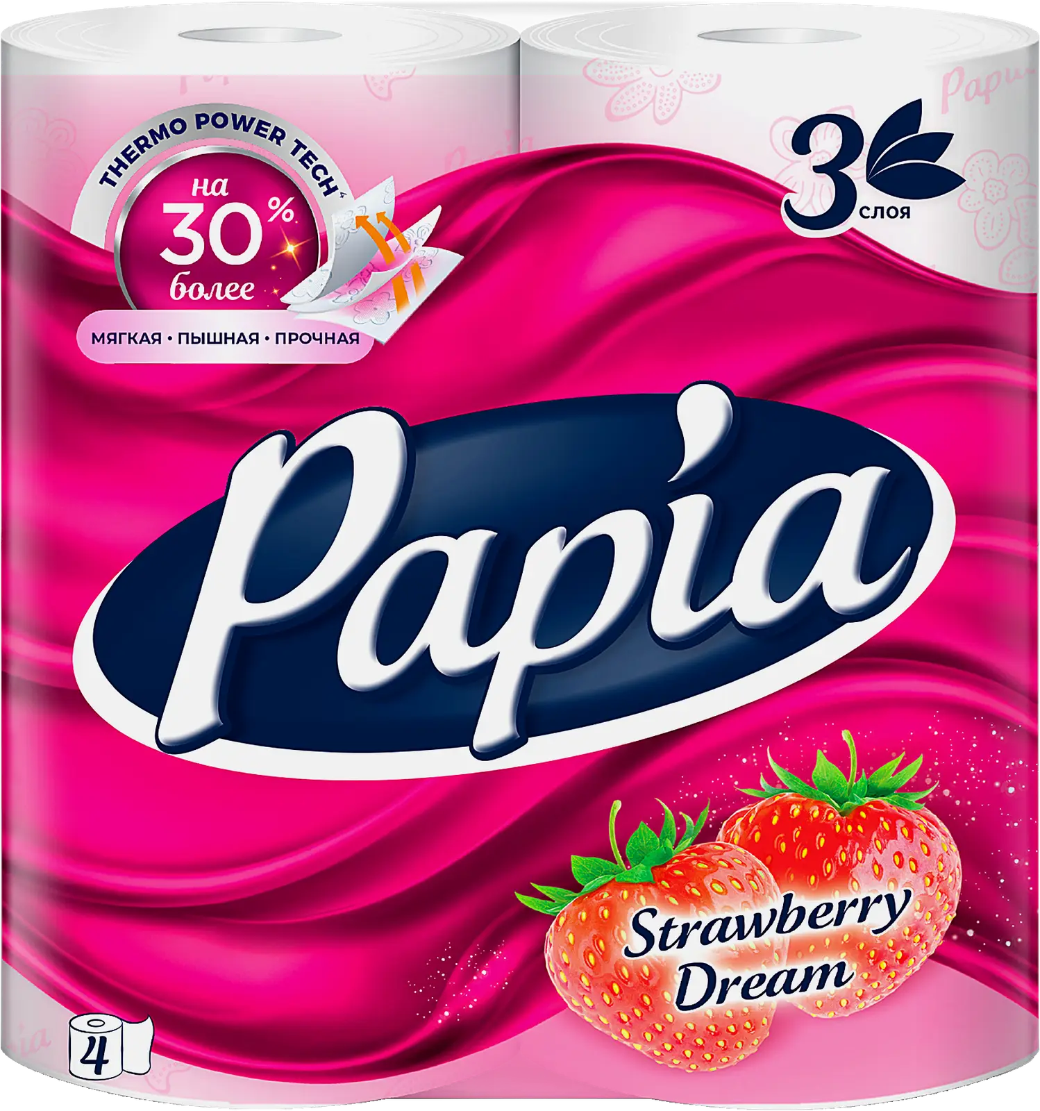 Трёхслойная туалетная бумага с экстрактом хлопка отличается мягкостью и хорошей впитываемостью благодаря двустороннему тиснению. Свежий клубничный аромат создаёт атмосферу свежести и уюта. Новая технология Termo Power Tech делает бумагу более пышной, мягкой и прочной. Безопасна для чувствительной кожи.