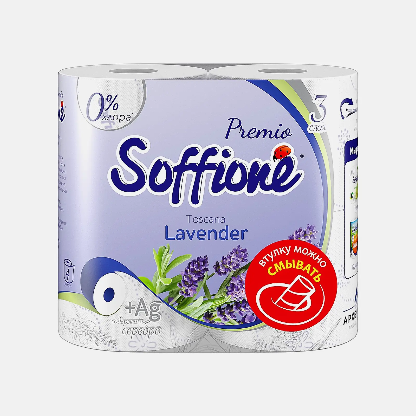 Туалетная бумага Soffione Premio лаванда 3 слоя 4 рулона