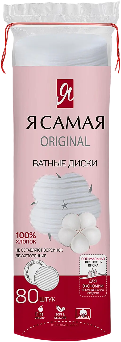 Двусторонние ватные диски из 100% хлопка — мягкие, плотные и хорошо впитывающие. Гладкая сторона подходит для тоника или лосьона, тиснёная — для снятия макияжа. Не оставляют ворсинок. Удобная упаковка с завязками.