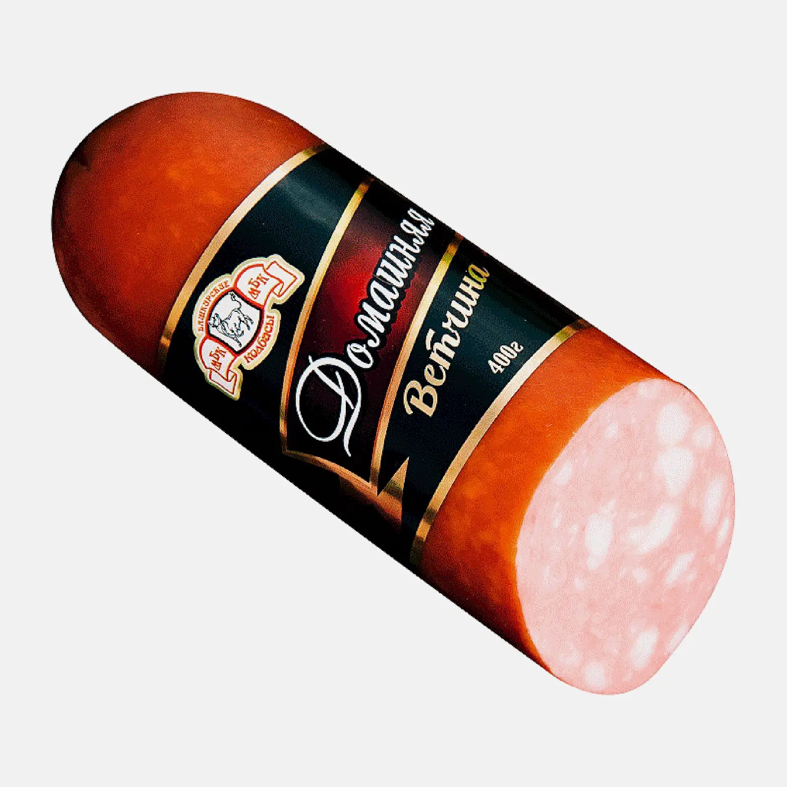 Ветчинная колбаса из свинины и мяса птицы. Содержит нитритную соль для яркости цвета. Ветчина подойдёт для бутербродов в обычном или поджаренном виде, для добавления в яичницу, домашнюю пиццу, салаты или солянку.