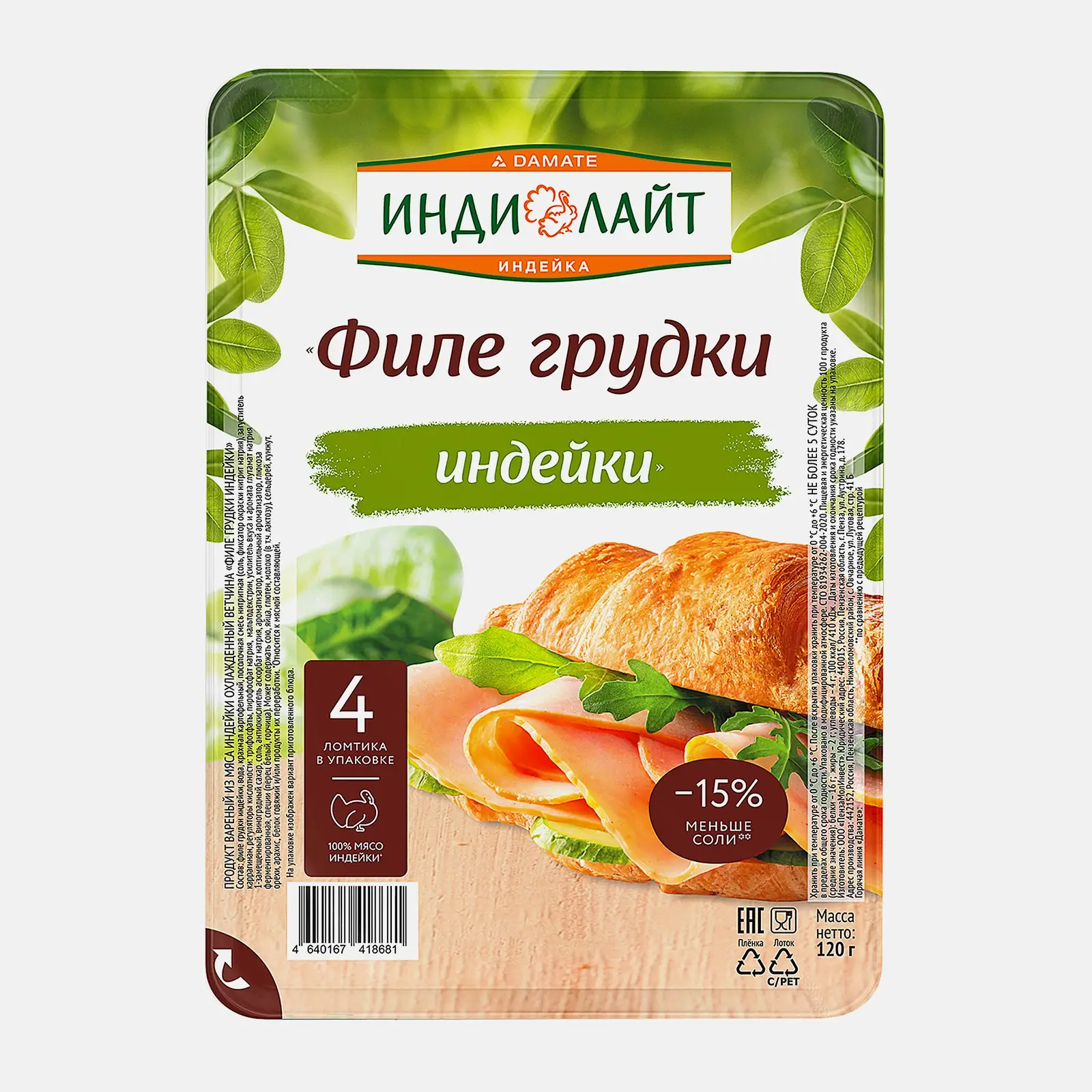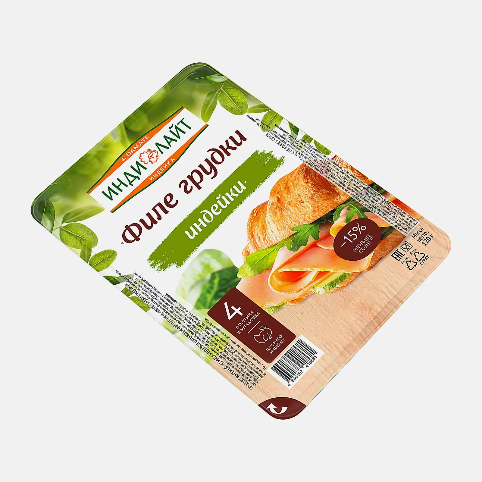 Ветчина Индилайт Филе грудки индейки вареная нарезка 120г