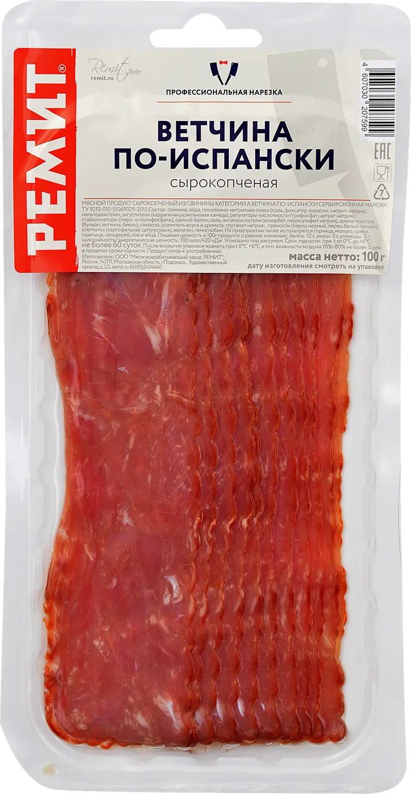 Ветчина Ремит По-испански в нарезке 100г