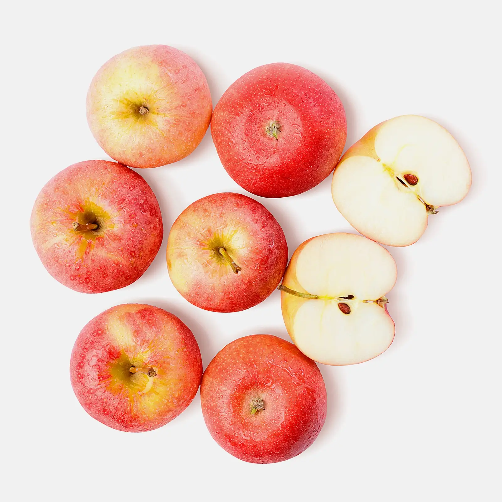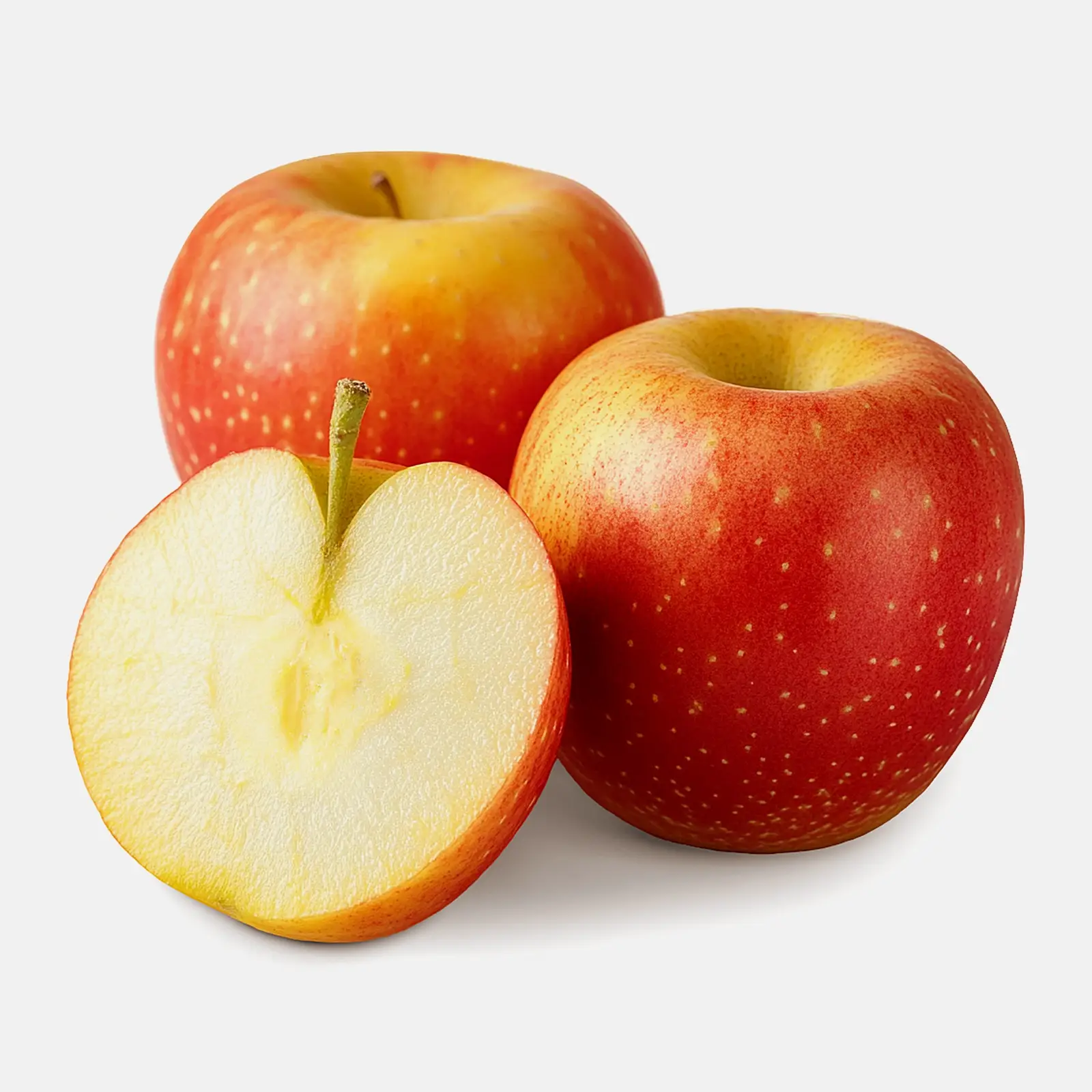 Яблоки Гала могут быть желтоватыми или зеленоватыми, но оранжевые блики на поверхности плода - неизменны. Мякоть у фруктов сочная, сладость умеренная, аромат - насыщенный.