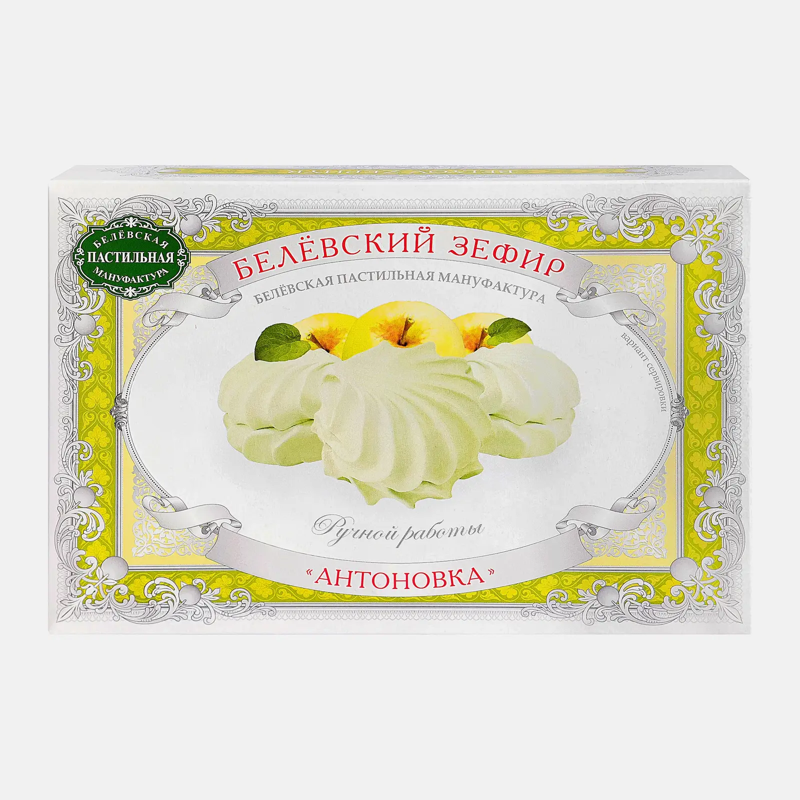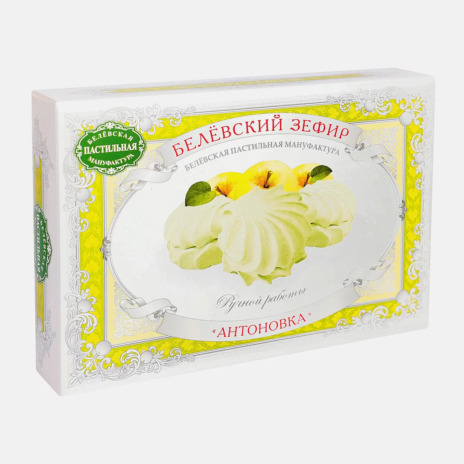 Зефир Белевский Антоновка 250г — это вкусный десерт, приготовленный по старинному рецепту. Для его производства используются сочные яблоки сорта Антоновка. Плоды обвариваются и перетираются вручную. В результате получается нежное яблочное пюре, которое является основой лакомства. Продукт отличается легкой, воздушной текстурой, тонким сливочно-фруктовым ароматом и приятным сладким вкусом с небольшой кислинкой. Десерт не содержит жиров, а на одну порцию приходится всего 53 ккал, поэтому он подойдет тем, кто придерживается диетического питания. Он станет хорошим дополнением к чаю, кофе или любым другим горячим напиткам. Зефир заключен в картонную упаковку и герметичную пленку.