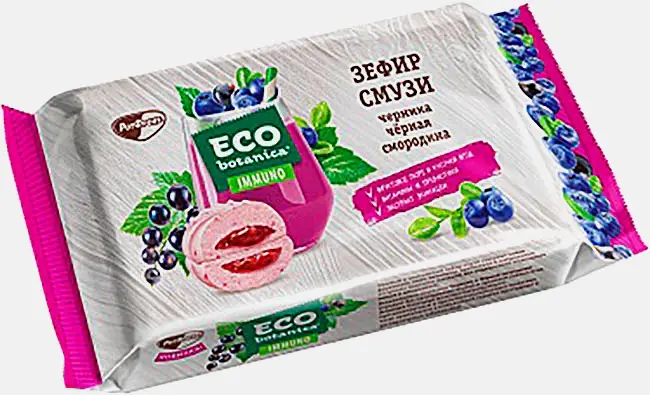 Нежный воздушный десерт на основе взбитого пюре из черники и чёрной смородины. Содержит витамины, пребиотики и натуральные экстракты полезных растений. Идеален для домашнего чаепития.