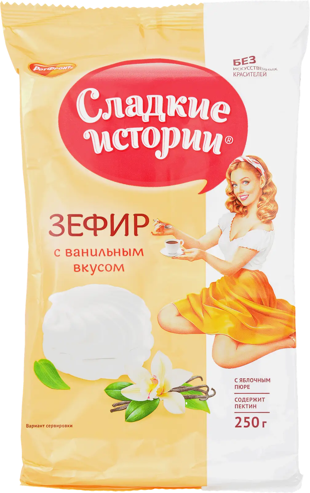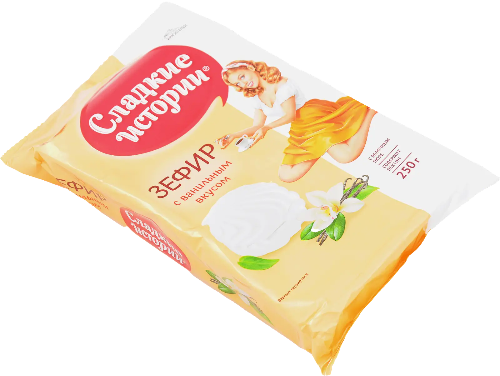 Классический зефир с мягкой воздушной текстурой и тонким ароматом ванили. Изготовлен с добавлением яблочного пюре и природного пектина. Не содержит искусственных красителей.