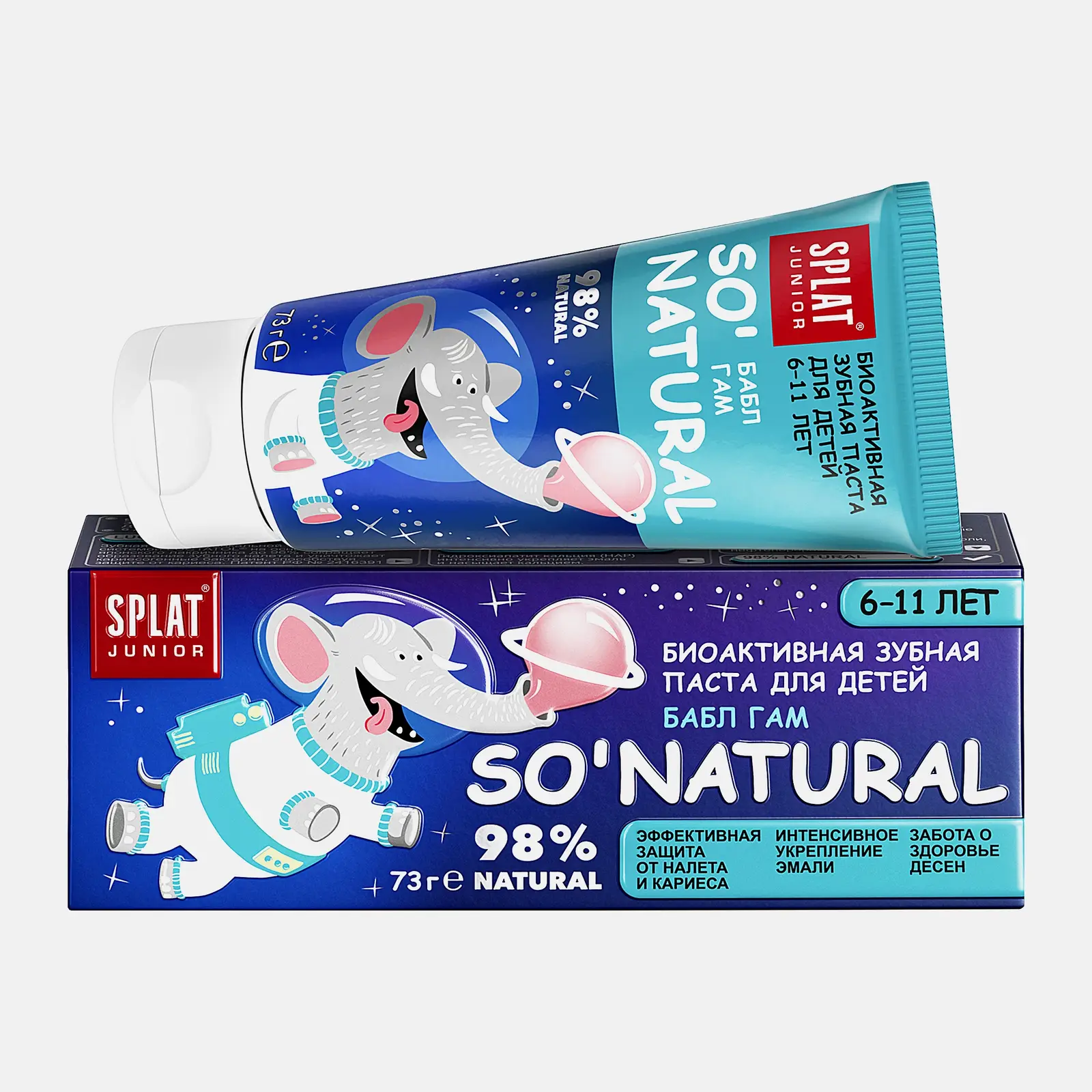 Детская зубная паста со вкусом бабл гам комплексно ухаживает за полостью рта без агрессивного воздействия. Запатентованная система Luctatol сокращает образование налёта и защищает от кариеса. Гидроксиапатит кальция укрепляет эмаль. Гель алоэ, экстракты коры магнолии, клюквы и граната, витамины А и Е оказывают противовоспалительное действие.