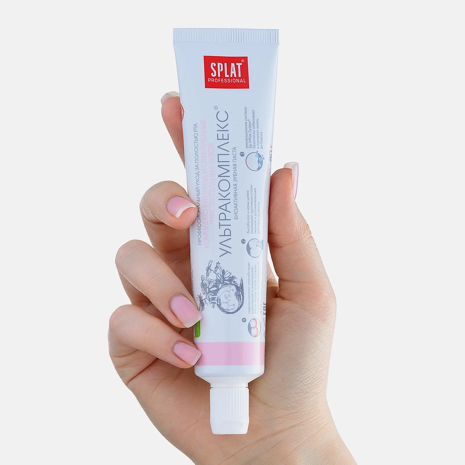 Паста подходит для комплексного ухода за чувствительными зубами. Содержит 98% натуральных компонентов. Гидроксиапатит и кальцис укрепляют эмаль, ионы цинка и бисаболол ухаживают за дёснами. Папаин и polydon способствуют очищению и отбеливанию. Без фтора, SLS и синтетических красителей.