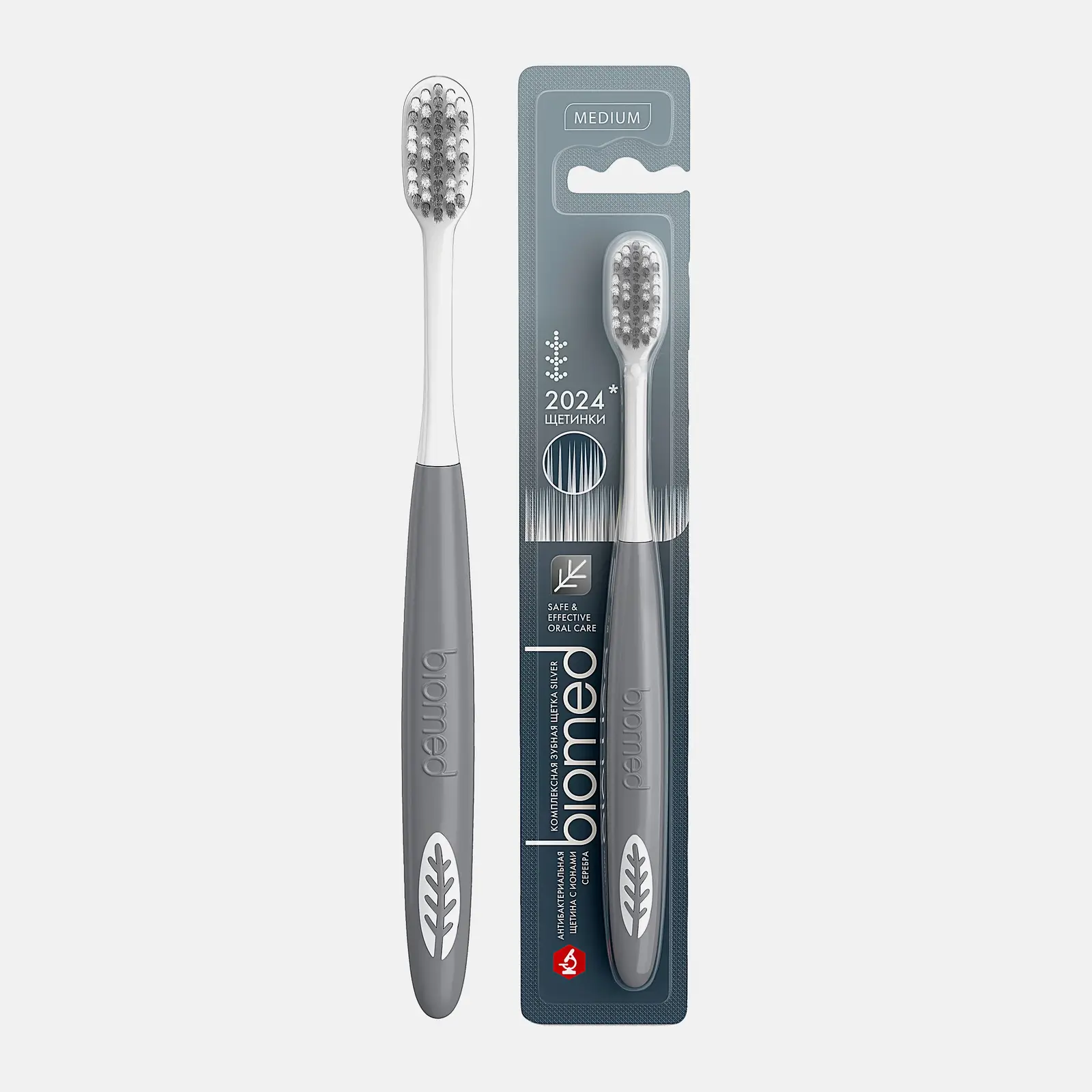 Зубная щётка с утончёнными щетинками средней жёсткости хорошо очищает труднодоступные места. Специальная форма головки обеспечивает доступ к дальним жевательным зубам. Антибактериальное покрытие щетины на основе ионов серебра препятствует размножению бактерий. Рекомендована к использованию с 14 лет.
