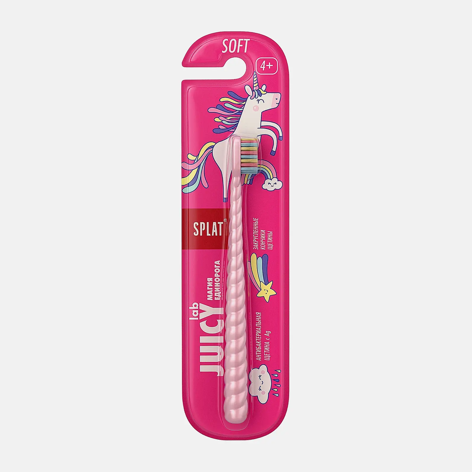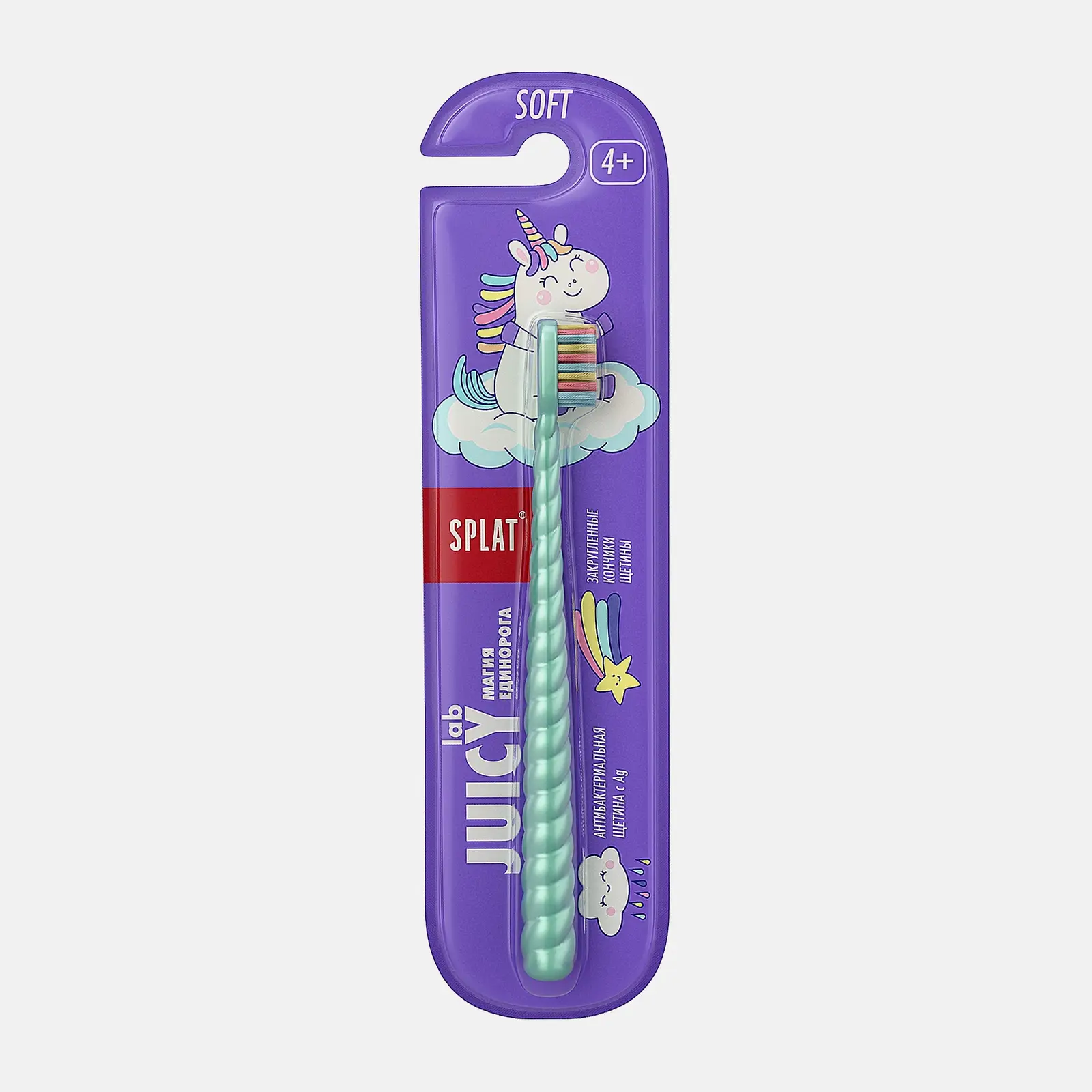 Детская зубная щётка с мягкой щетиной с инновационным сапфировым закруглением бережно очищает и полирует эмаль. Ионы серебра в щетине предотвращают размножение бактерий на 99%. Разноцветные щетинки и ручка в форме рога единорога привлекают детей к чистке зубов. Низкая влагопоглощаемость щетинок позволяет им долго сохранять прочность и упругость.